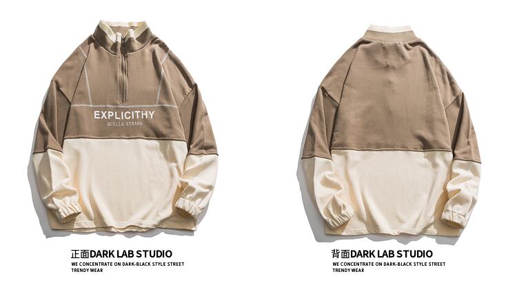 病みカッコイイ メンズファッション ストリートファッション ヒップホップ 個性的 裏原 スタンダードカラージッパープルオーバー セーター ルーズカジュアルジャケット レトロ ストリート ステッチ ✝ メンズファッション79727192358