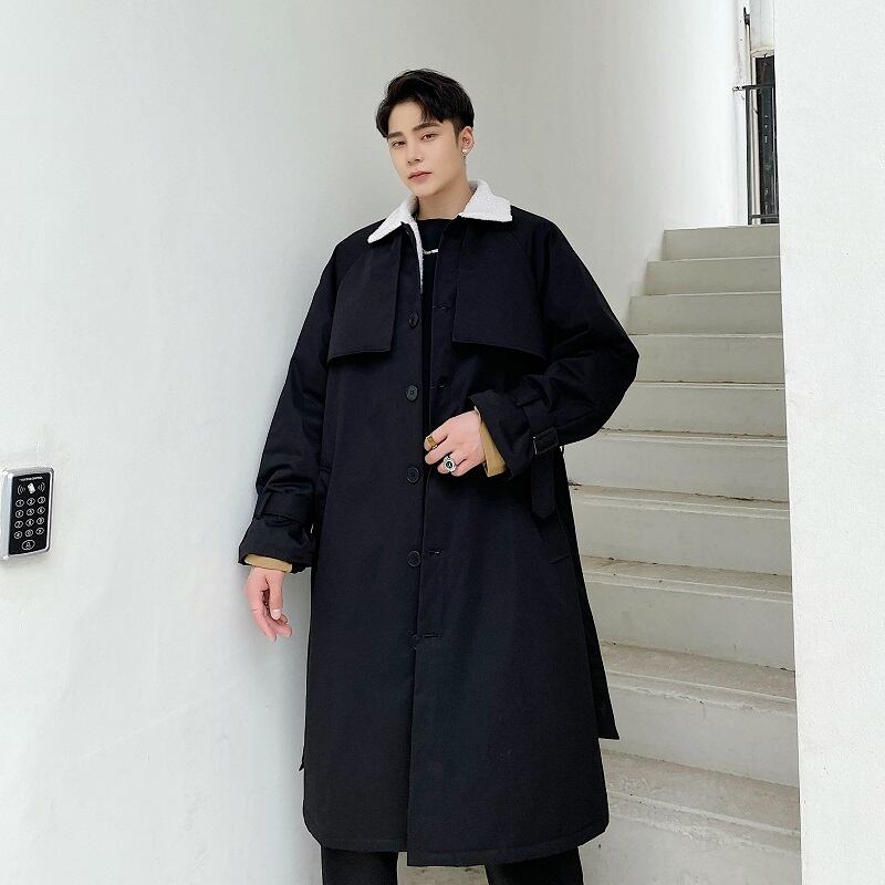 病みカッコイイ メンズファッション ストリートファッション ヒップホップ 個性的 裏原 ウィンタースタンダードウールロングコート ルーズファーカラー コットン レトロ 冬物 ステッチ ✝ おしゃれ メンズ 7806036007