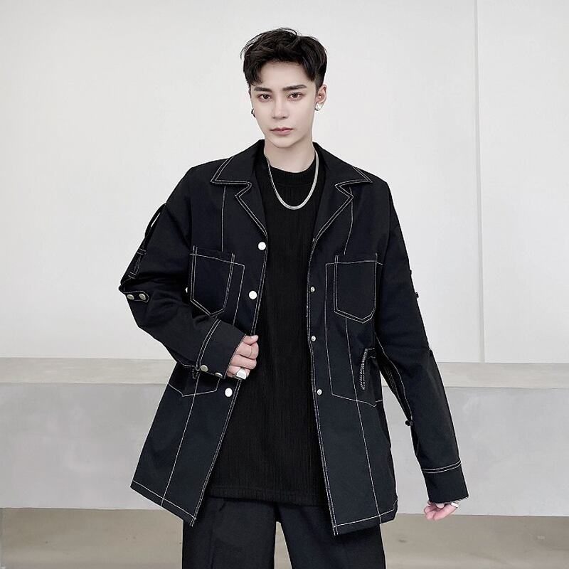 病みカッコイイ メンズファッション ストリートファッション ヒップホップ 個性的 裏原 スタンダードブラックジャケット ルーズスプリングオータムカジュアル レトロ 春物 秋物 ✝ おしゃれ メンズ 14599586314