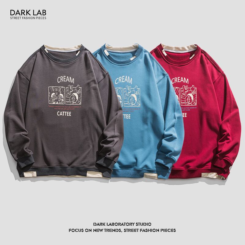病みカッコイイ メンズファッション ストリートファッション ヒップホップ 個性的 裏原 スタンダードプリントラウンドネックセーター ルーズカジュアルプルオーバー ジャケット レトロ ストリート Oネック ✝ メンズファッション76352048434