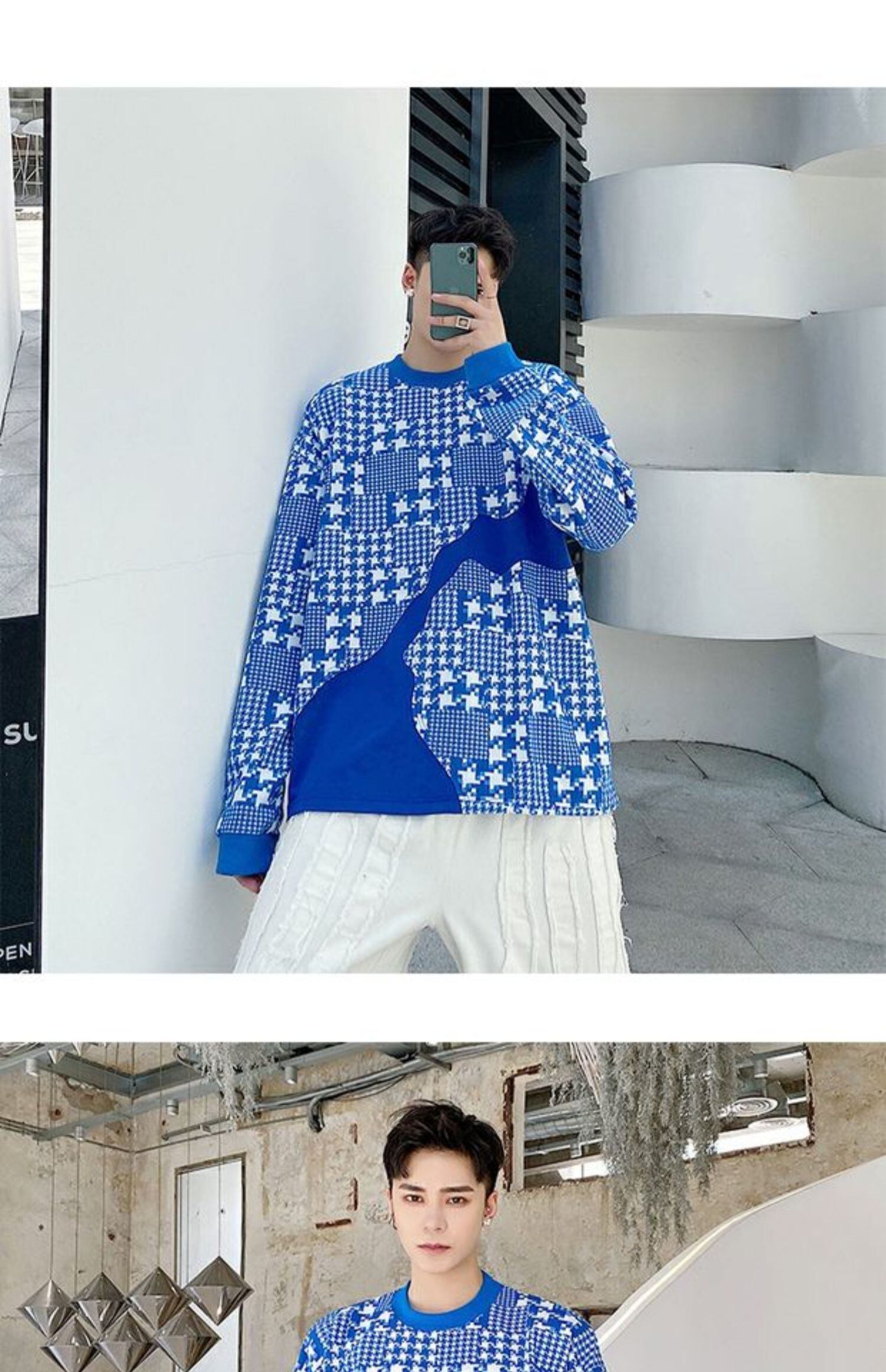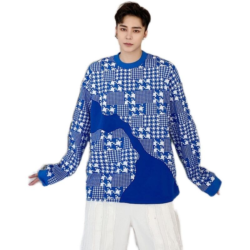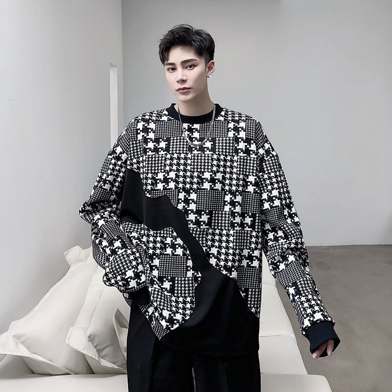 病みカッコイイ メンズファッション ストリートファッション ヒップホップ 個性的 裏原 オータムカラーラウンドネックセーター ルーズ格子柄トップス プルオーバー ジャケット 秋物 Oネック ステッチ ✝ おしゃれ メンズ 87755141120