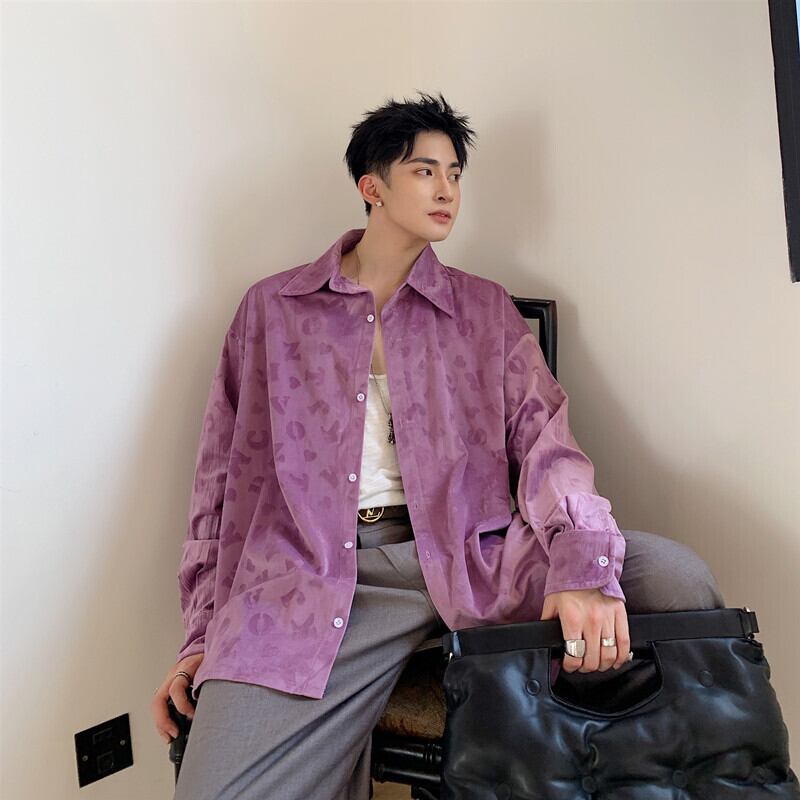 病みカッコイイ メンズファッション ストリートファッション ヒップホップ 個性的 裏原 レッドシャツ ルーズスタンダードベルベットプリント ロング レトロ ✝ おしゃれ メンズ 79556032147