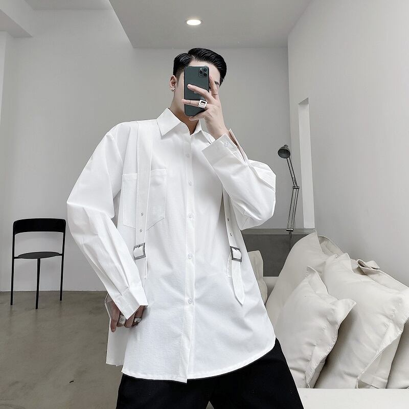 病みカッコイイ メンズファッション ストリートファッション ヒップホップ 個性的 裏原 スタンダードソリッド カラーシャツ ルーズレッドスタイル ロング レトロ ソリッドカラー ✝ おしゃれ メンズ 802685686