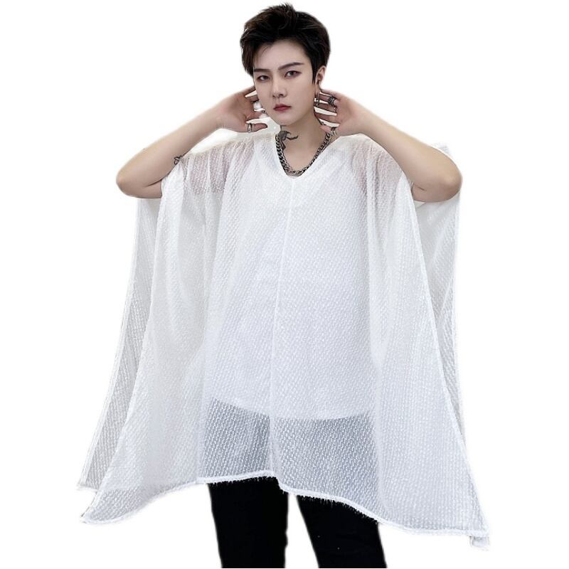 病みカッコイイ メンズファッション ストリートファッション ヒップホップ 個性的 裏原 スプリングサマーメッシュプルオーバー ブラウス ルーズTシャツ 春物 夏物 ✝ おしゃれ メンズ 65405148748