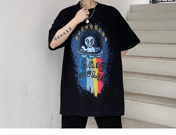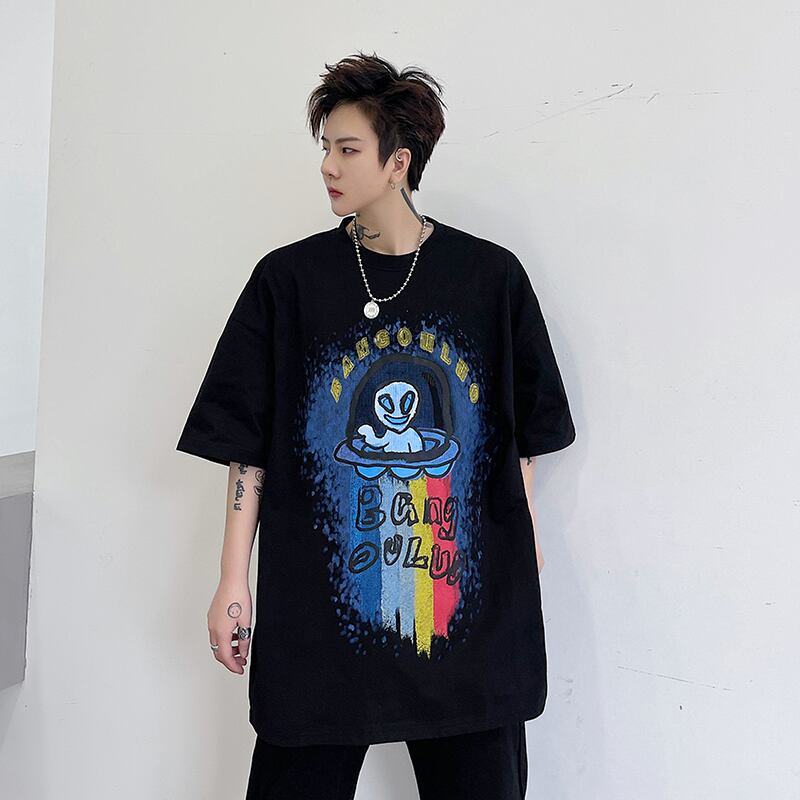 病みカッコイイ メンズファッション ストリートファッション ヒップホップ 個性的 裏原 サマーダークプリントTシャツ シャツ ルーズ 夏物 ✝ おしゃれ メンズ 93885072263