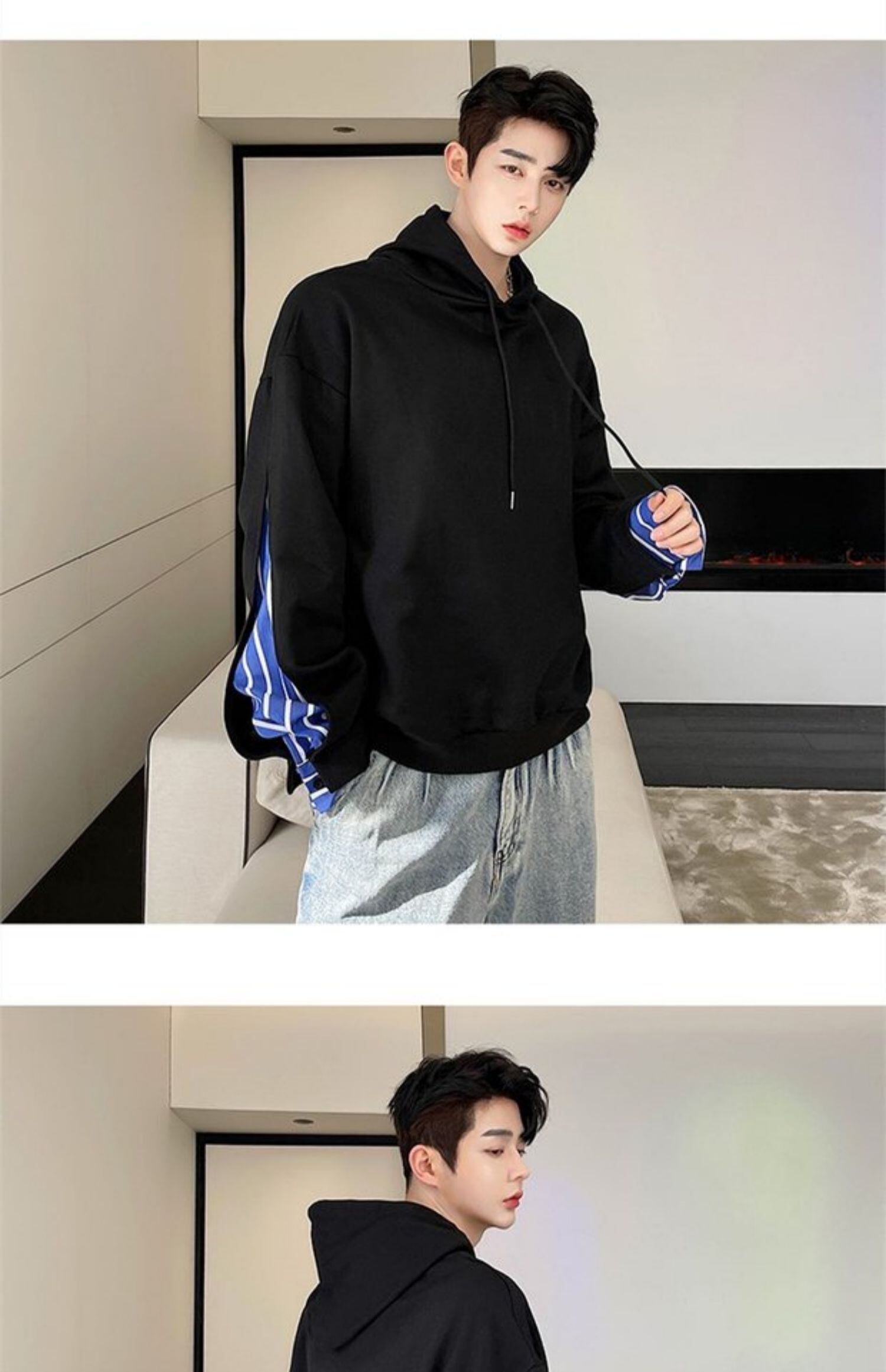 病みカッコイイ メンズファッション ストリートファッション ヒップホップ 個性的 裏原 フードジャケット ルーズストライプセーター スプリングオータム 春物 秋物 ステッチ ✝ おしゃれ メンズ 40583354015