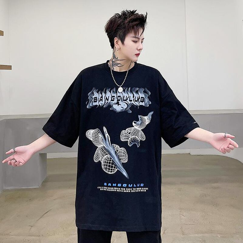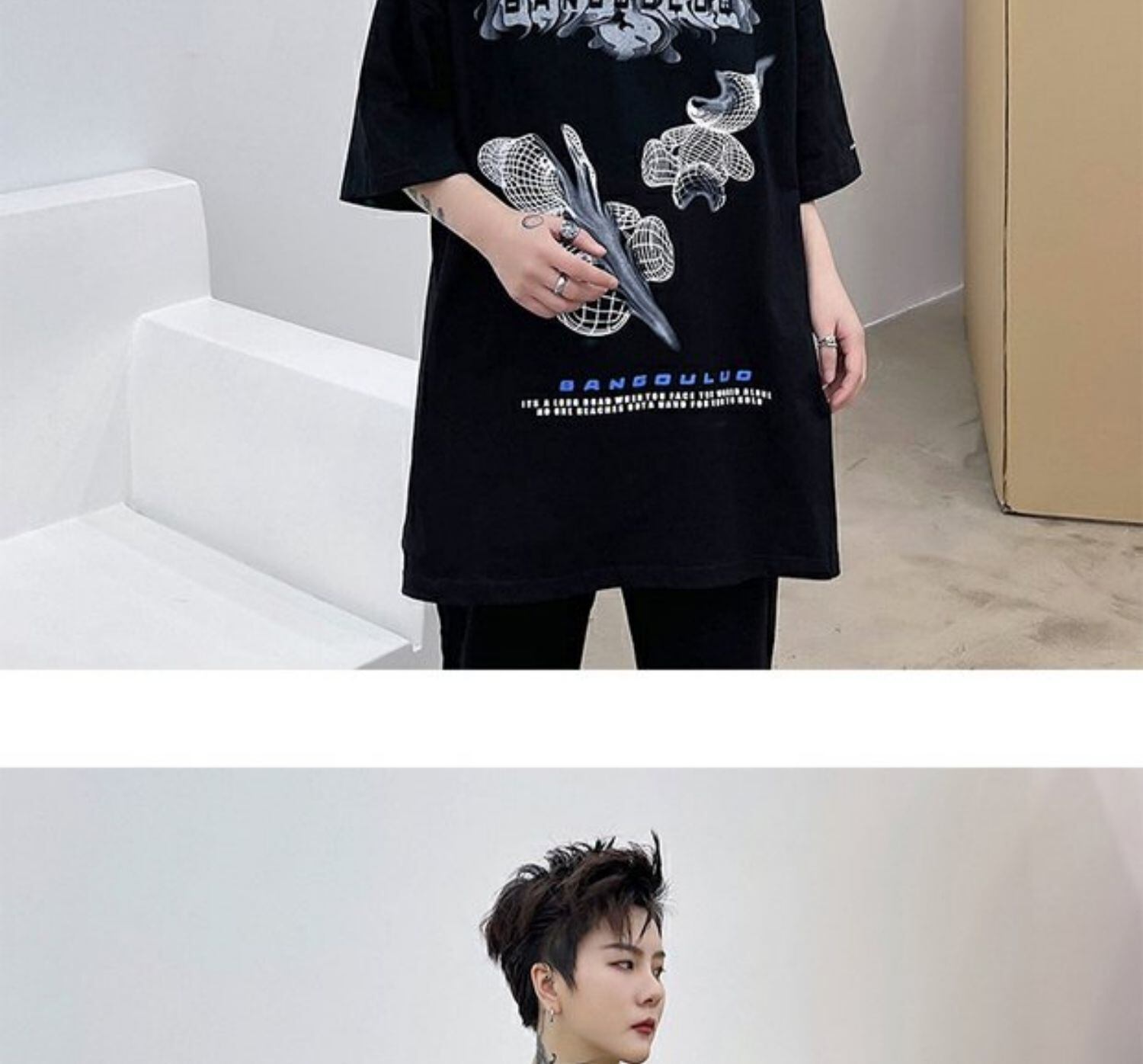 病みカッコイイ メンズファッション ストリートファッション ヒップホップ 個性的 裏原 サマーダークプリントTシャツ シャツ ルーズ 夏物 ✝ おしゃれ メンズ 30374803900