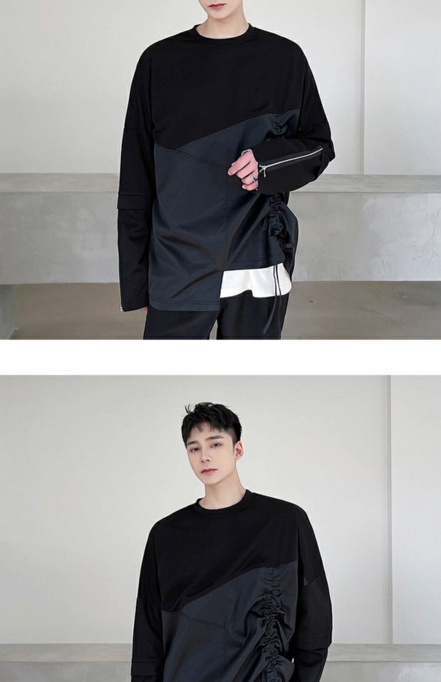 病みカッコイイ メンズファッション ストリートファッション ヒップホップ 個性的 裏原 ギャザーTシャツ スタンダードスタイルプルオーバー トップス ロング レトロ ✝ おしゃれ メンズ 9419466092