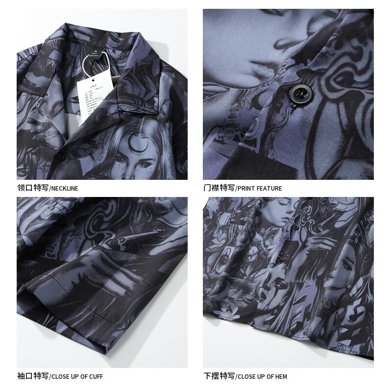 病みカッコイイ メンズファッション ストリートファッション ヒップホップ 個性的 裏原 ダークプリントシャツ レディーススタンダード レトロ ストリート ✝ メンズファッション66539277707