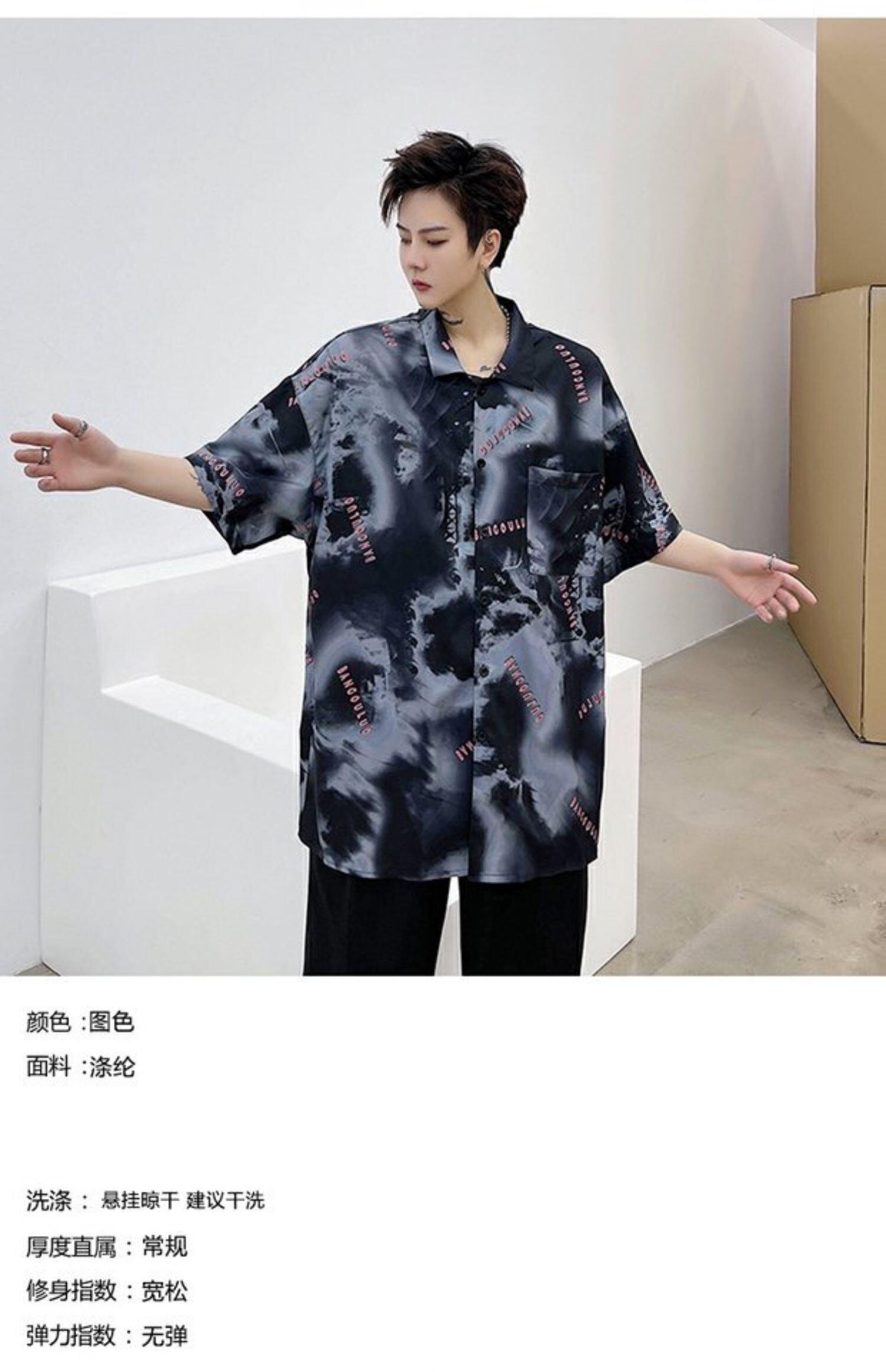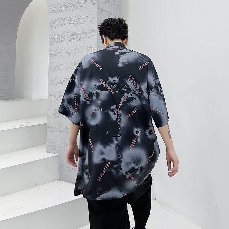 病みカッコイイ メンズファッション ストリートファッション ヒップホップ 個性的 裏原 サマーシャツ ルーズダークブラック 夏物 ✝ おしゃれ メンズ 82846319883