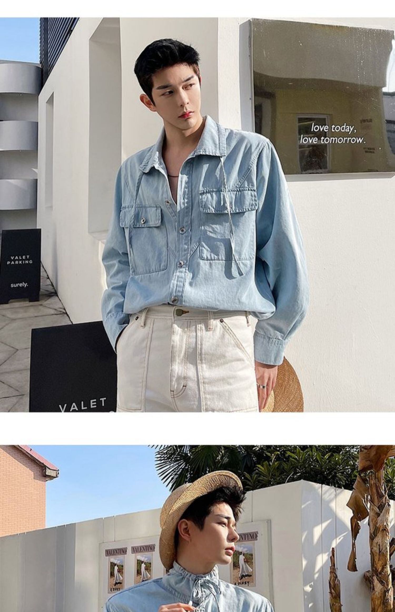 病みカッコイイ メンズファッション ストリートファッション ヒップホップ 個性的 裏原 スタンダードブルーシャツ ルーズレッドジャケット スプリングオータム ロング レトロ 春物 秋物 ✝ おしゃれ メンズ 38326433516