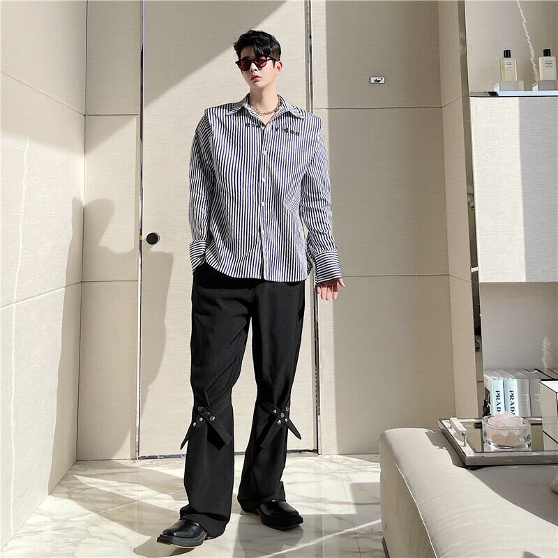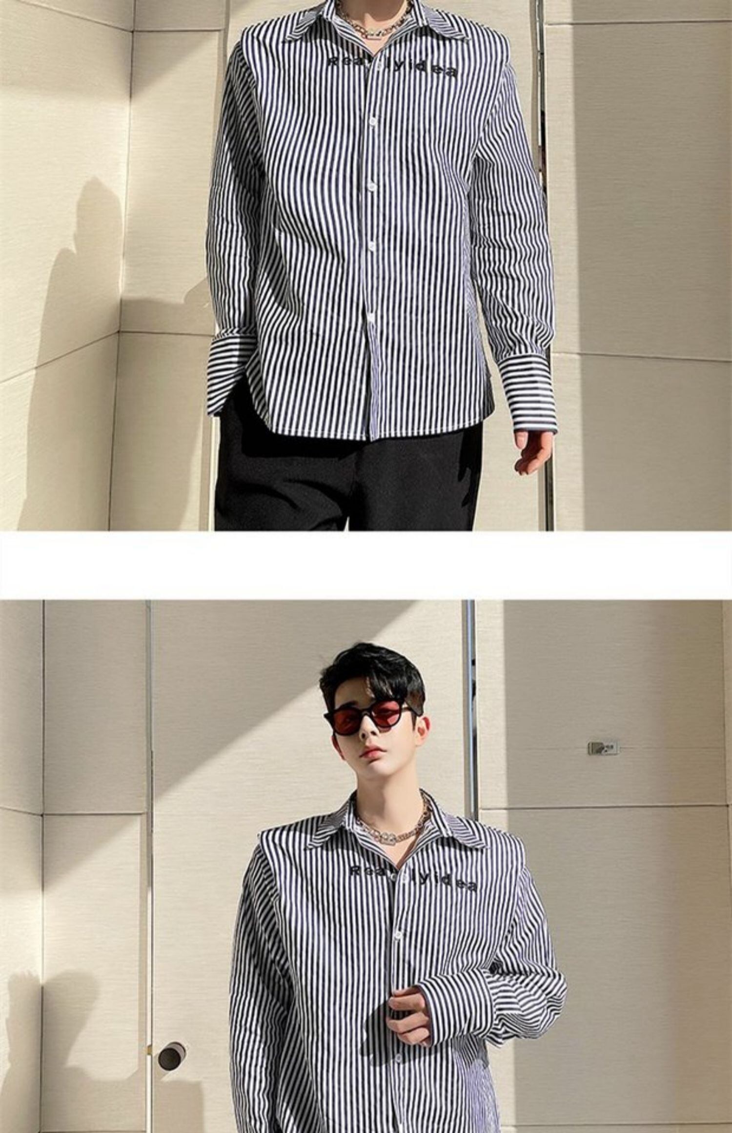 病みカッコイイ メンズファッション ストリートファッション ヒップホップ 個性的 裏原 スタンダードストライプシャツ レッド ロング レトロ ドレス ✝ おしゃれ メンズ 77350749651