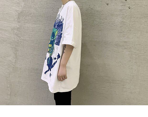 病みカッコイイ メンズファッション ストリートファッション ヒップホップ 個性的 裏原 サマープリントTシャツ シャツ ルーズ ストリート 夏物 ✝ おしゃれ メンズ 38503657536