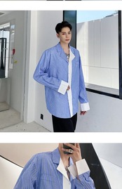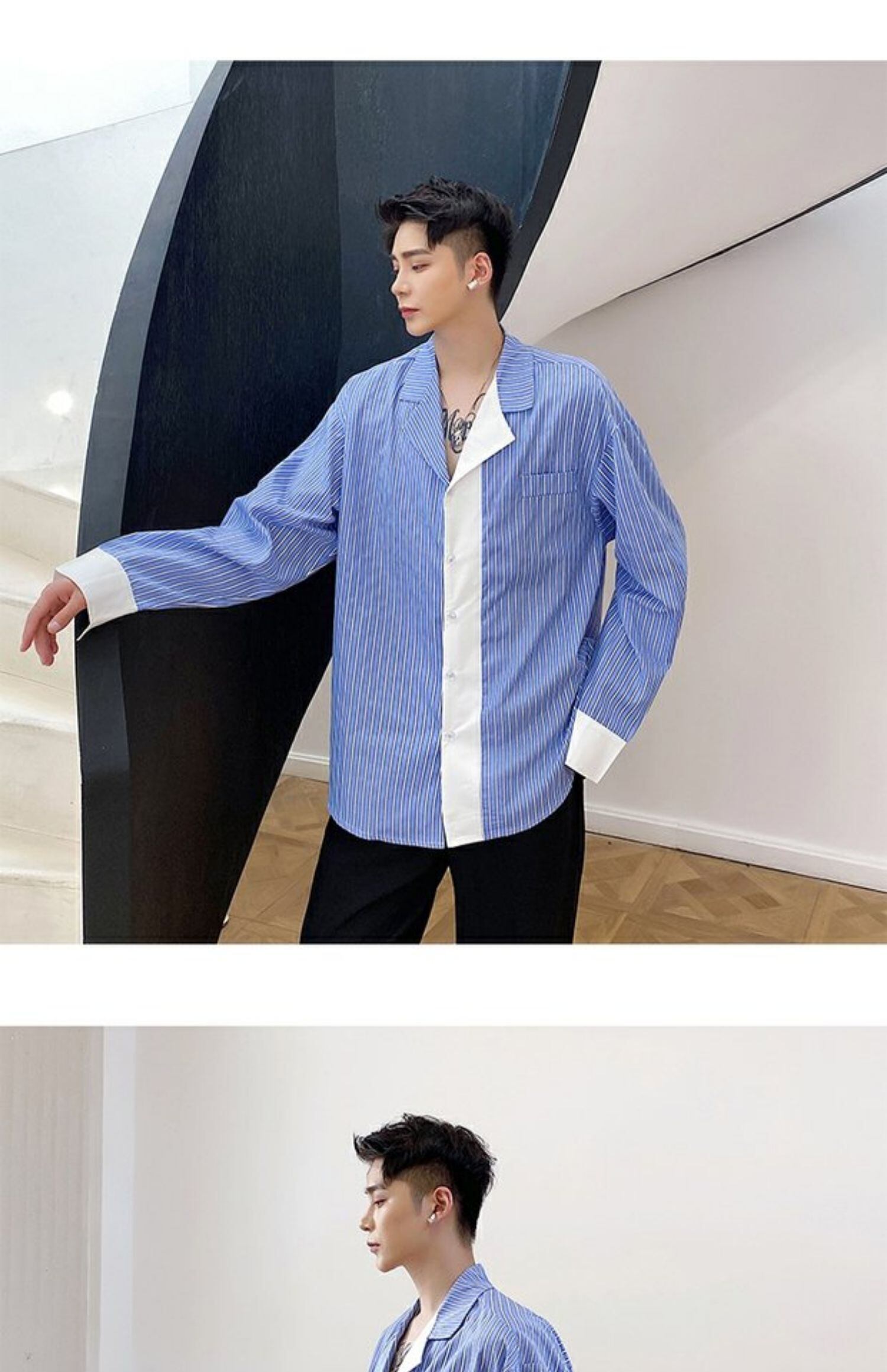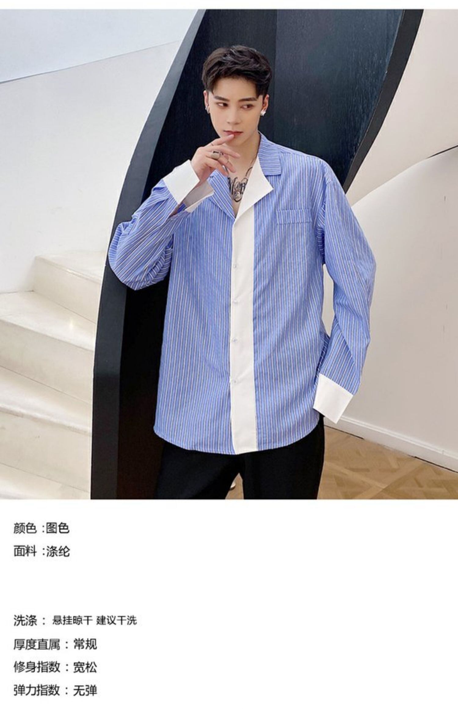 病みカッコイイ メンズファッション ストリートファッション ヒップホップ 個性的 裏原 スプリングスタイルスタンダードブルーストライプシャツ ルーズ ロング レトロ 春物 ✝ おしゃれ メンズ 43251664828