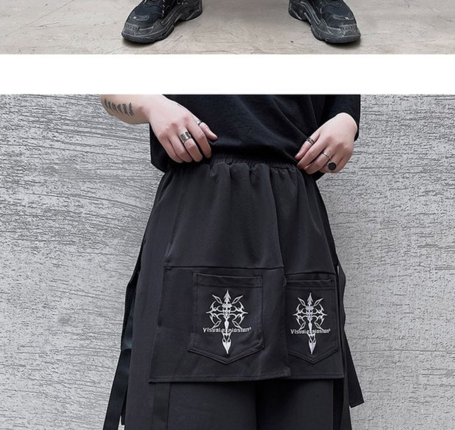 病みカッコイイ メンズファッション ストリートファッション ヒップホップ 個性的 裏原 サマー刺繍ショーツ ルーズツーピーススカート パンツ 夏物 ブルマー ✝ おしゃれ メンズ 52261968191