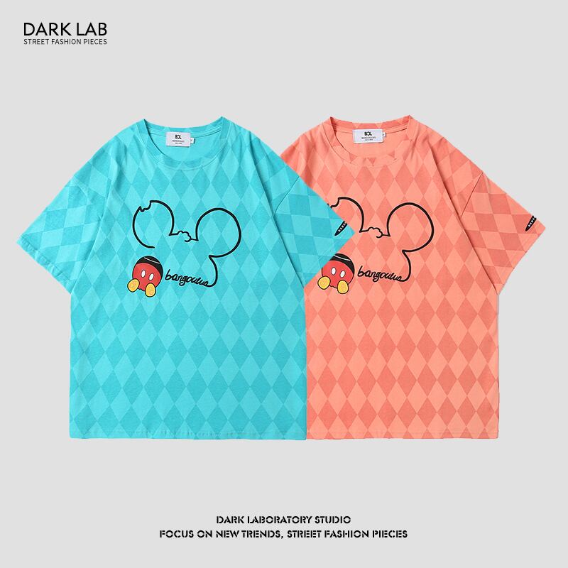 病みカッコイイ メンズファッション ストリートファッション ヒップホップ 個性的 裏原 サマープリントTシャツ 格子柄ルーズカジュアル ストリート 夏物 ✝ メンズファッション15775212347