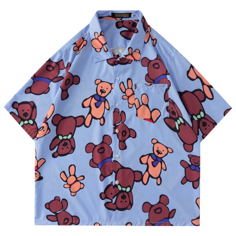 病みカッコイイ メンズファッション ストリートファッション ヒップホップ 個性的 裏原 サマースタイルプリント柄シャツ ジャケット ルーズ ストリート かわいい 夏物 ✝ メンズファッション70104904273