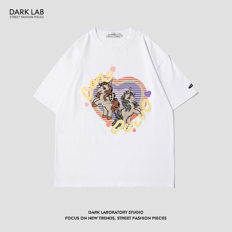 病みカッコイイ メンズファッション ストリートファッション ヒップホップ 個性的 裏原 刺繍ラウンドネックシャツ ルーズTシャツ ストリート Oネック ✝ メンズファッション1668991000
