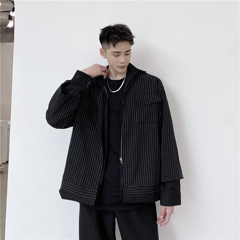 病みカッコイイ メンズファッション ストリートファッション ヒップホップ 個性的 裏原 スタンダードストライプジャケット ルーズスプリングオータム レトロ 春物 秋物 ✝ おしゃれ メンズ 56176665058