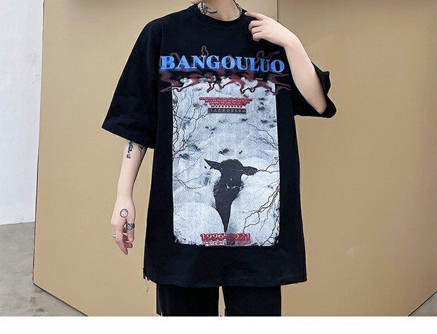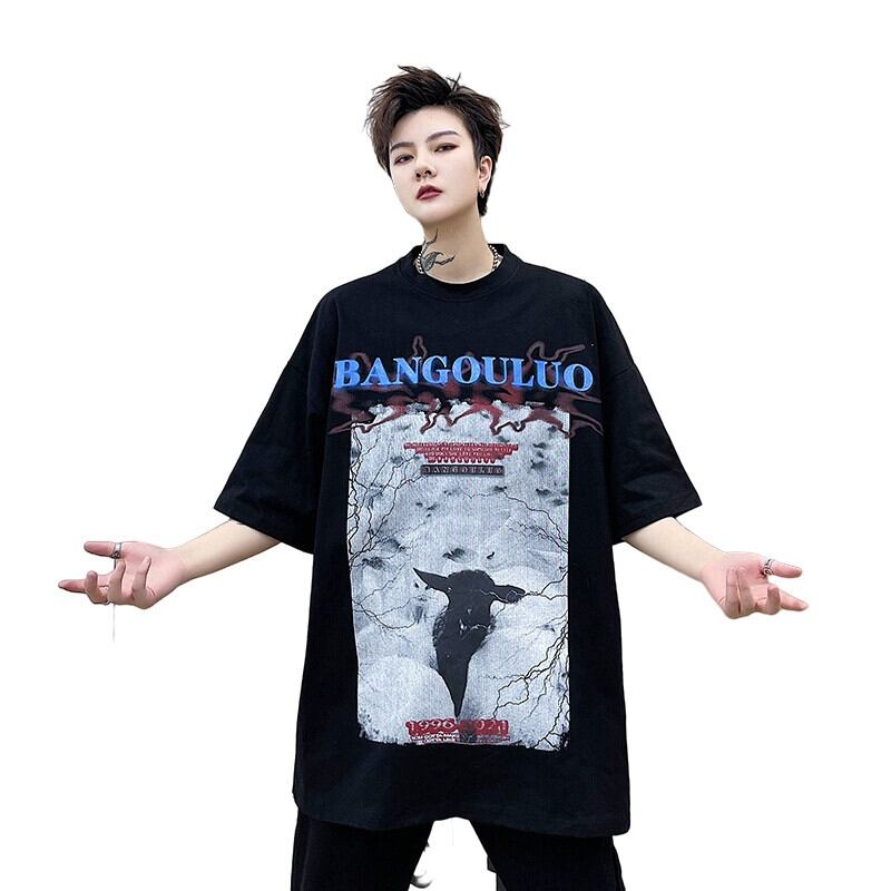 病みカッコイイ メンズファッション ストリートファッション ヒップホップ 個性的 裏原 サマー自然派ルーズTシャツ プリント 夏物 ✝ おしゃれ メンズ 28004585738