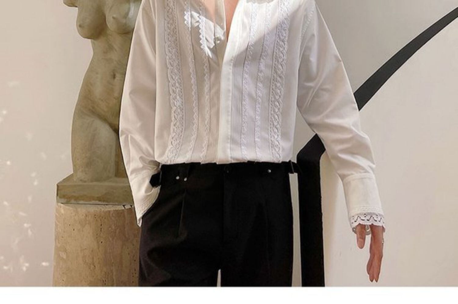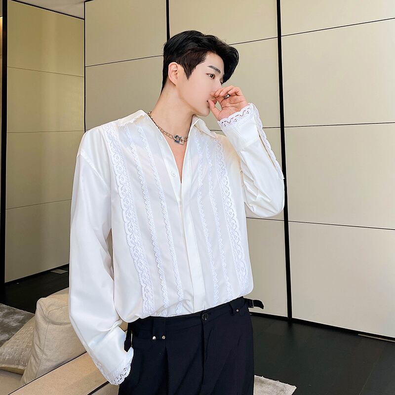 病みカッコイイ メンズファッション ストリートファッション ヒップホップ 個性的 裏原 スプリングレーススタイルスタンダードホワイトシャツ 長袖スリーブ ロング レトロ 春物 ドレス ✝ おしゃれ メンズ 82892385159
