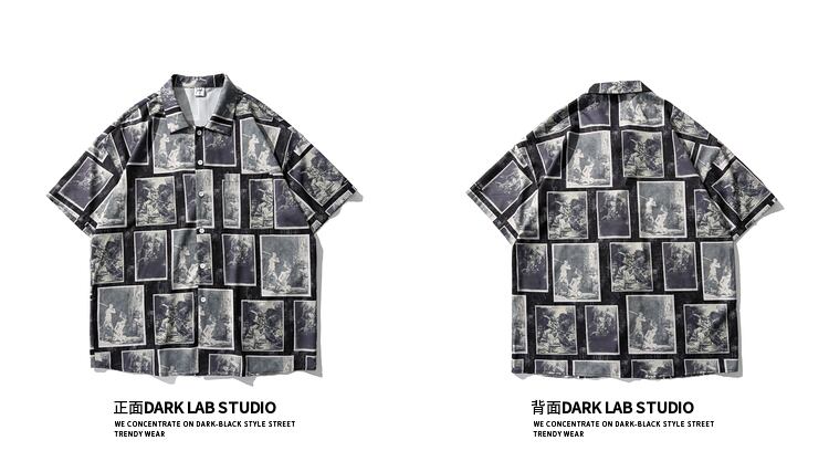 病みカッコイイ メンズファッション ストリートファッション ヒップホップ 個性的 裏原 スタンダードプリントシャツ ルーズカジュアル レトロ ストリート ヨーロピアン ✝ メンズファッション49480084035