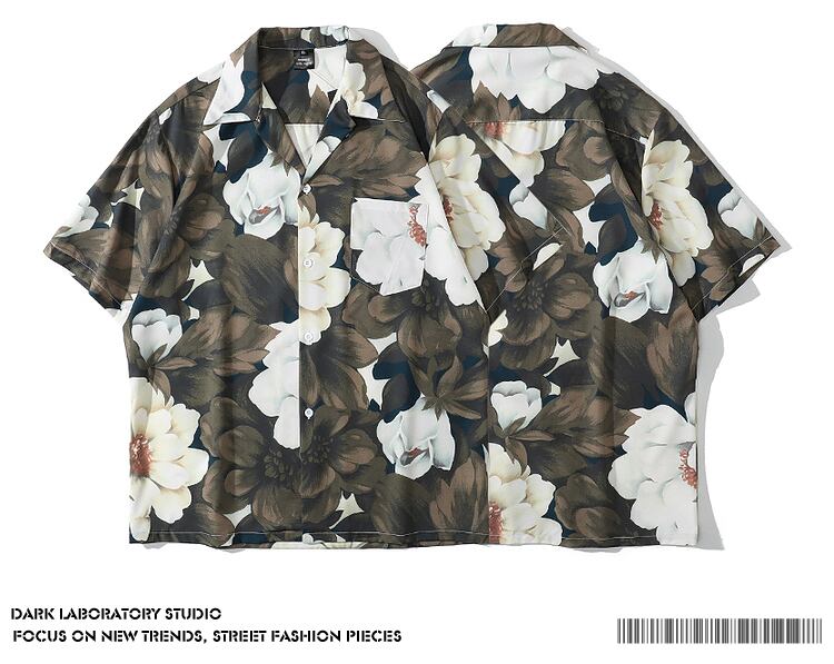 病みカッコイイ メンズファッション ストリートファッション ヒップホップ 個性的 裏原 スタンダードFlowerデザイン プリント柄シャツ レディースサマールーズ レトロ ストリート 夏物 ビーチ フラワーデザイン ✝ メンズファッション17154011251