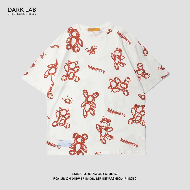 病みカッコイイ メンズファッション ストリートファッション ヒップホップ 個性的 裏原 サマープリントラウンドネックレディースTシャツ コットン ストリート 夏物 Oネック ✝ メンズファッション21542023902
