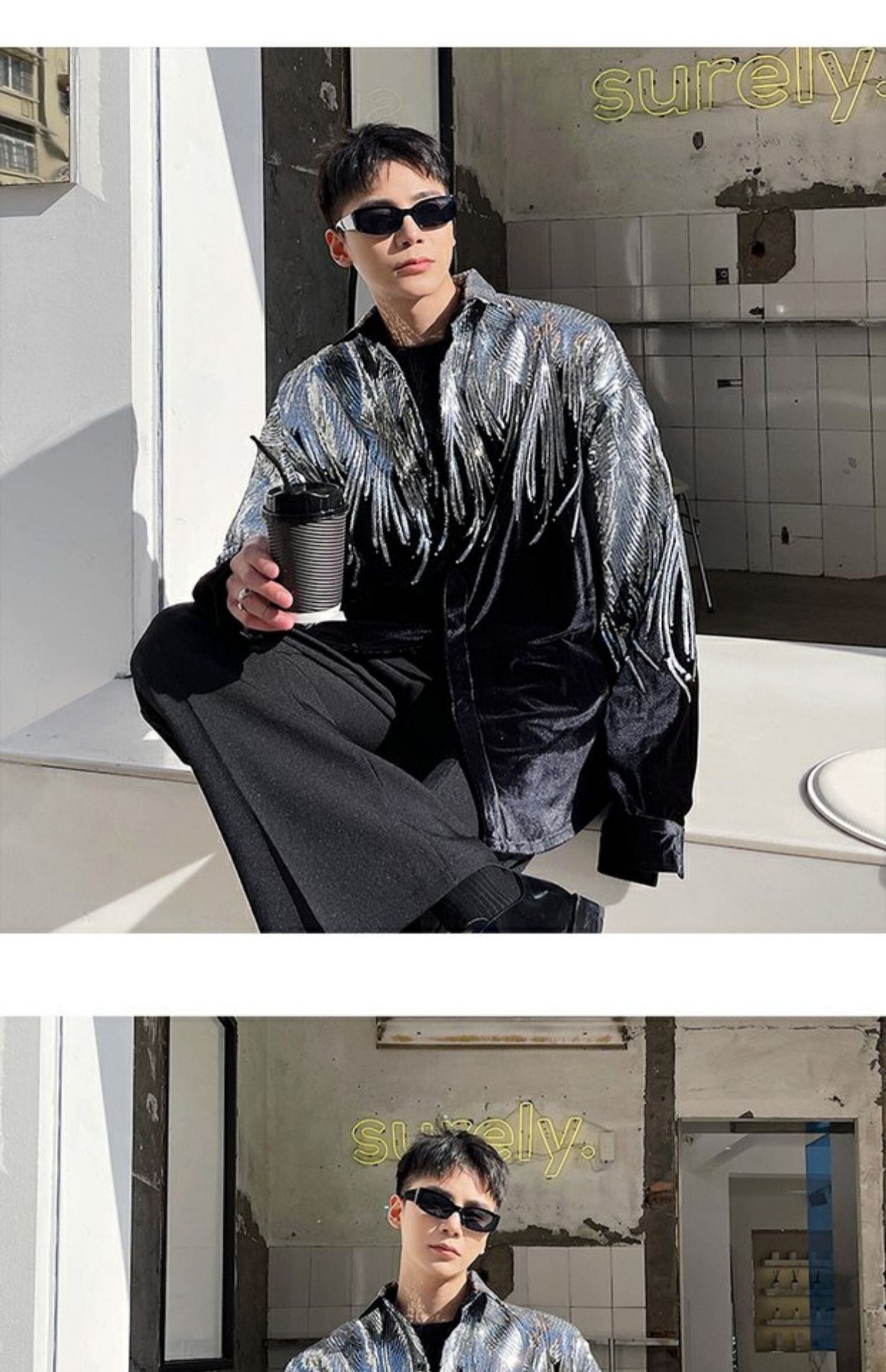 病みカッコイイ メンズファッション ストリートファッション ヒップホップ 個性的 裏原 レッドシャツ ルーズベルベット ロング ストリート ドレス ✝ おしゃれ メンズ 92886368202