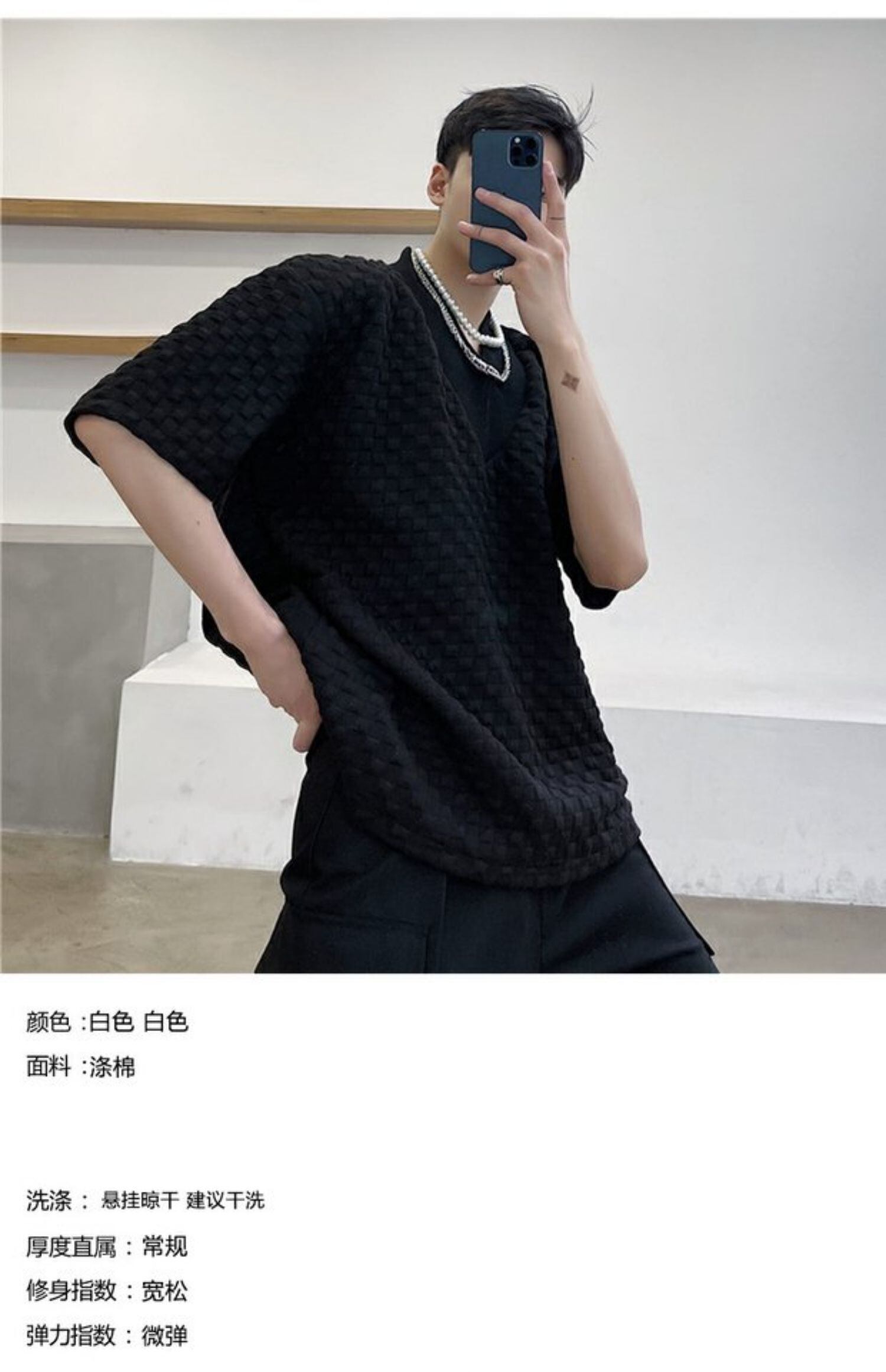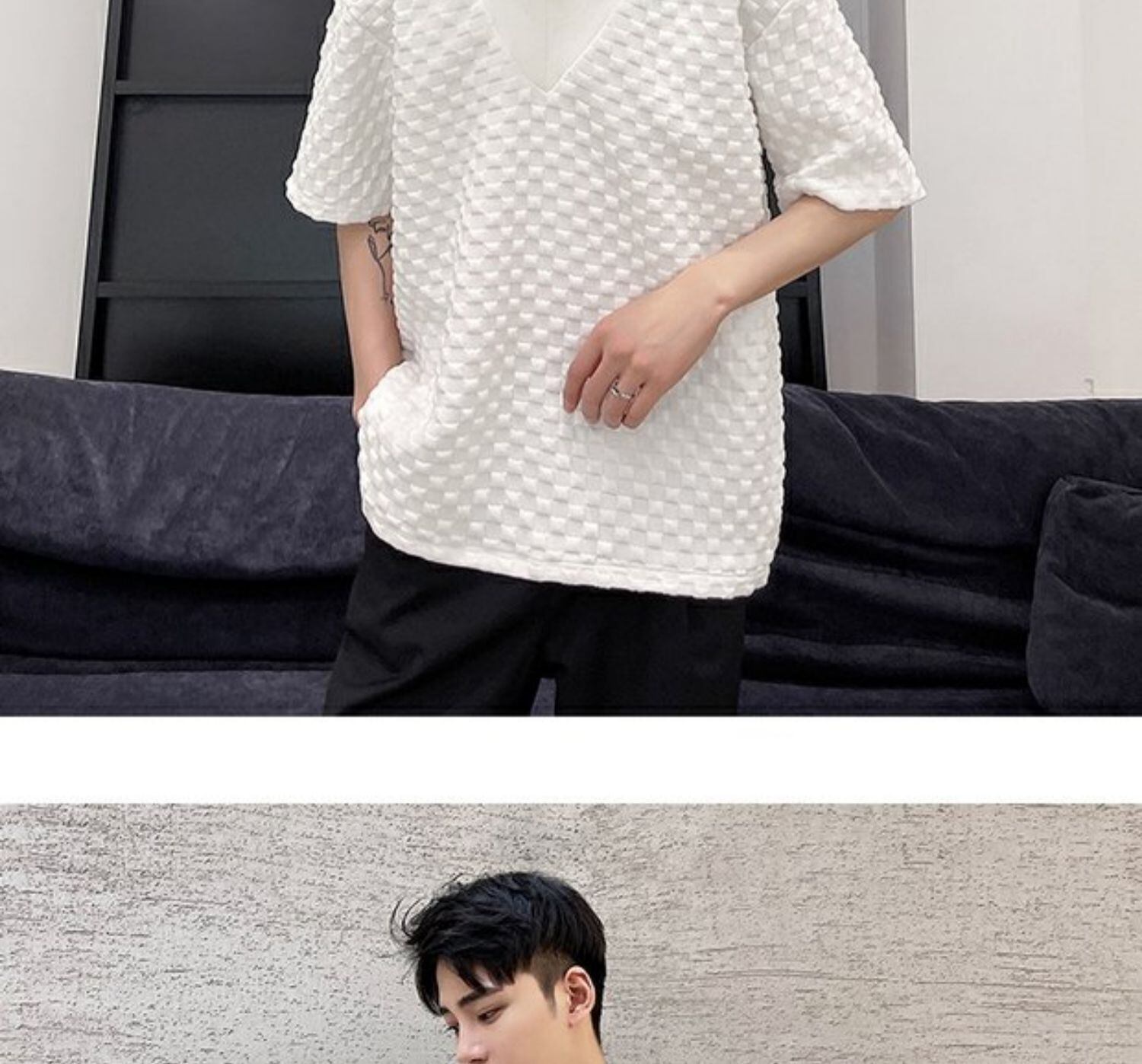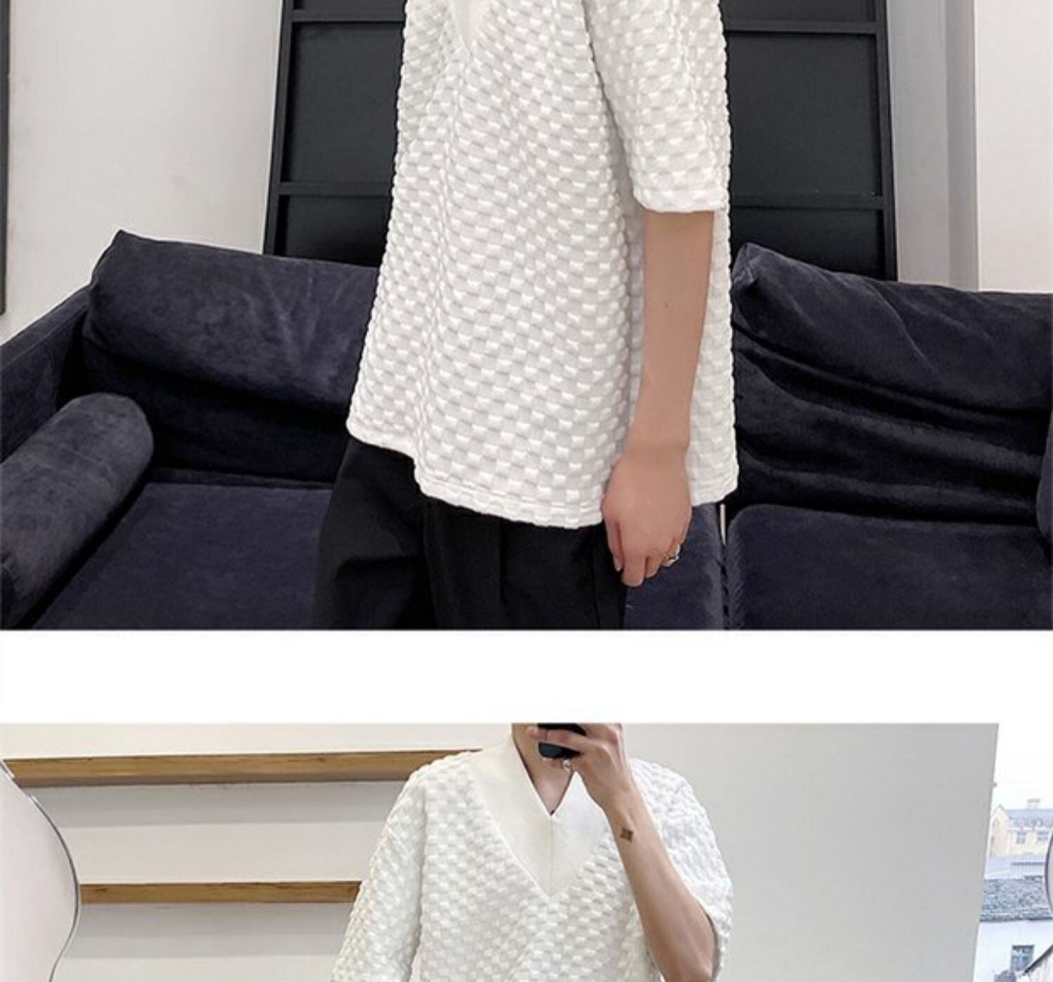 病みカッコイイ メンズファッション ストリートファッション ヒップホップ 個性的 裏原 サマーカラーVネックTシャツ シャツ ルーズ格子柄 夏物 ピュア ✝ おしゃれ メンズ 29059660576