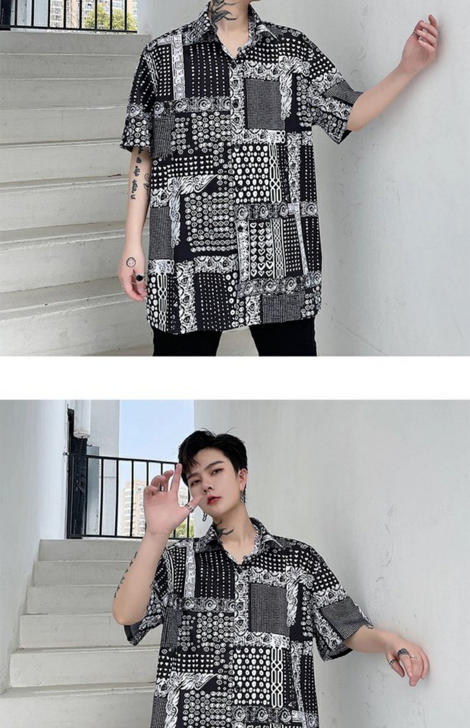 病みカッコイイ メンズファッション ストリートファッション ヒップホップ 個性的 裏原 サマースタンダードプリントシャツ ルーズ レトロ 夏物 ✝ おしゃれ メンズ 72265327293