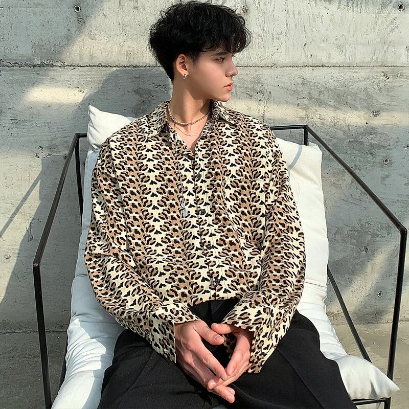 病みカッコイイ メンズファッション ストリートファッション ヒップホップ 個性的 裏原 スプリングサマーレオパードシャツ ルーズレッド薄手 ロング ストリート 春物 夏物 ✝ おしゃれ メンズ 25133923740