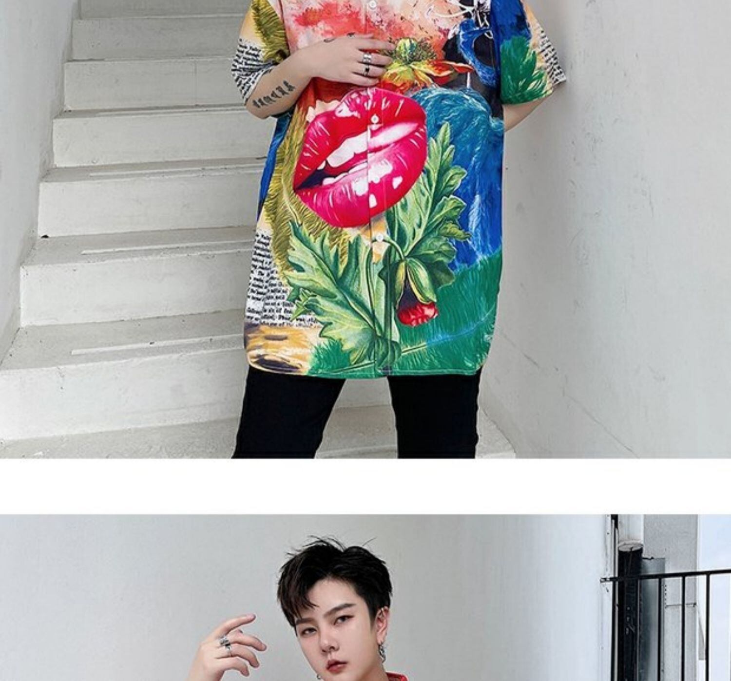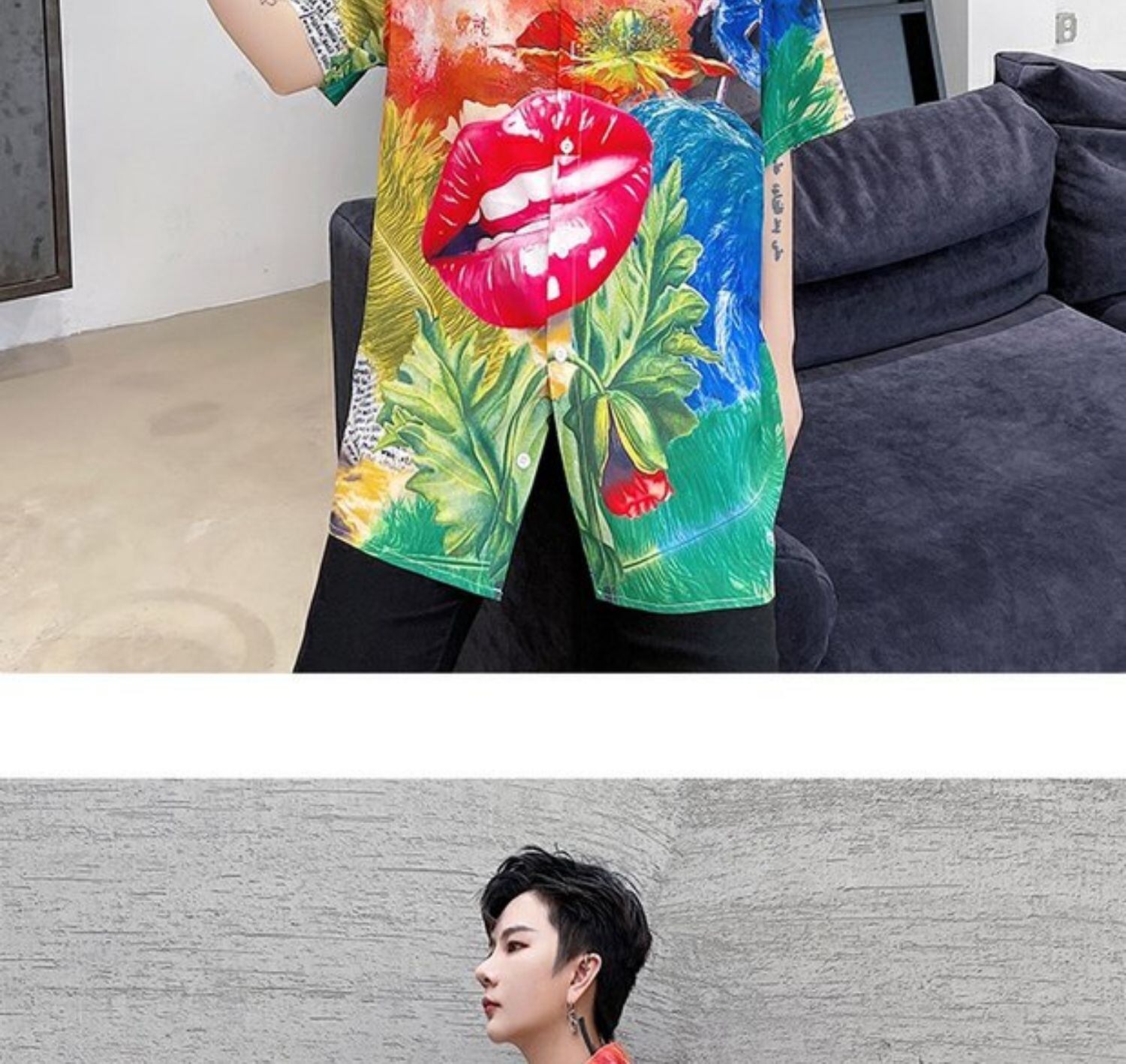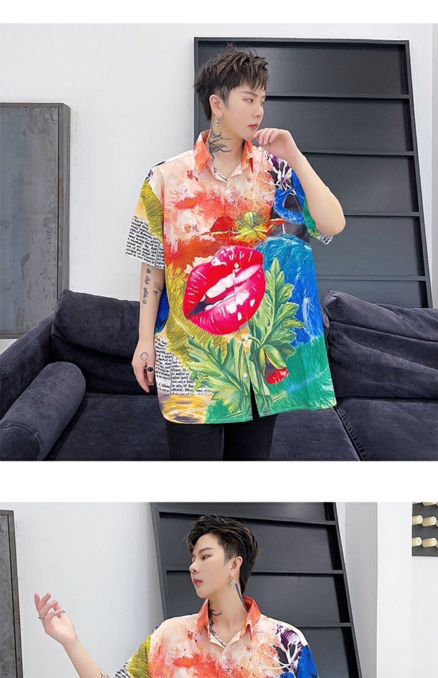 病みカッコイイ メンズファッション ストリートファッション ヒップホップ 個性的 裏原 サマーレッドプリントシャツ ルーズカジュアル 夏物 ✝ おしゃれ メンズ 45572759502