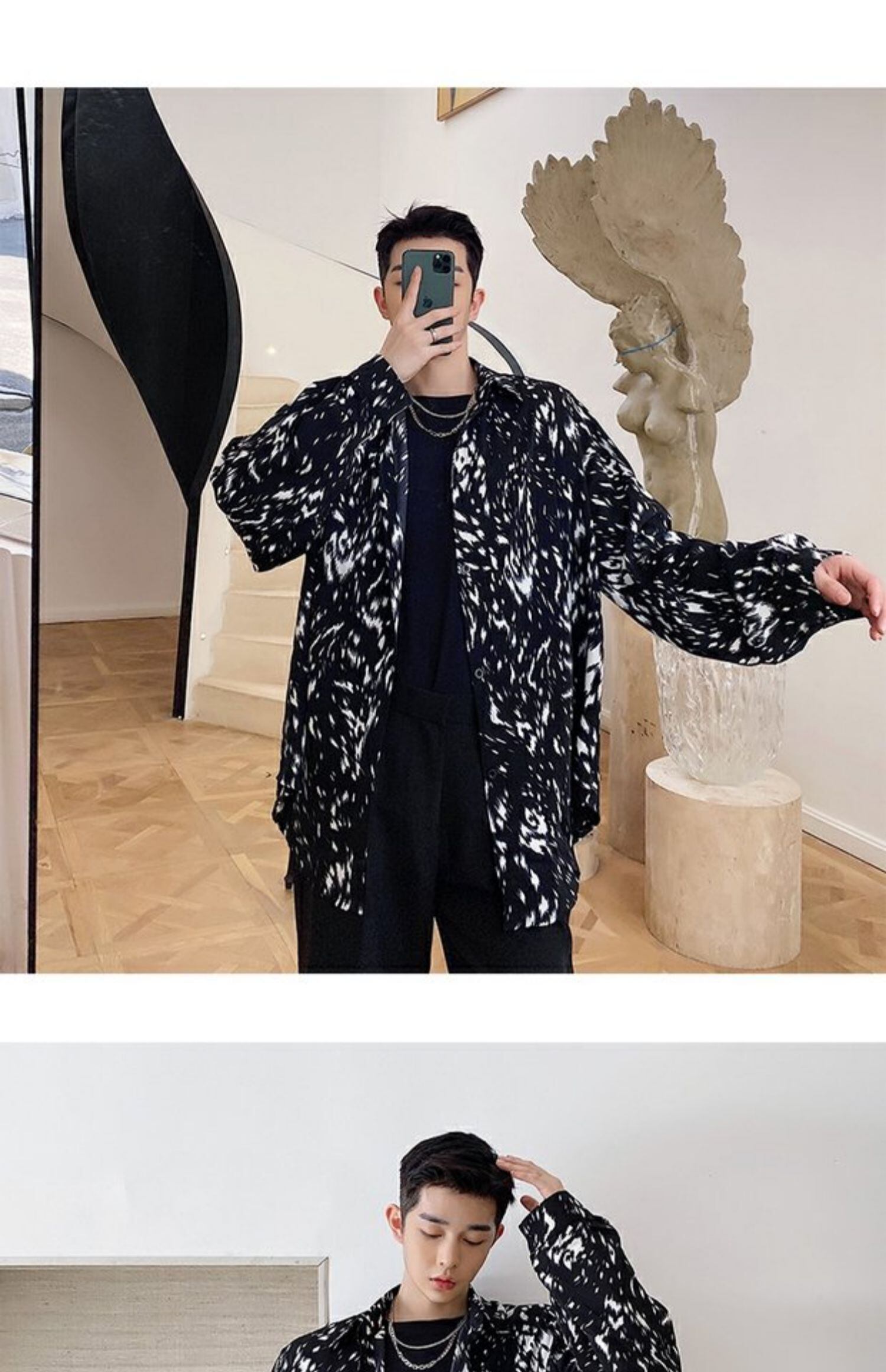 病みカッコイイ メンズファッション ストリートファッション ヒップホップ 個性的 裏原 スプリングサマースタイルシャツ ルーズ薄手プリント ロング 春物 夏物 ✝ おしゃれ メンズ 49488111161