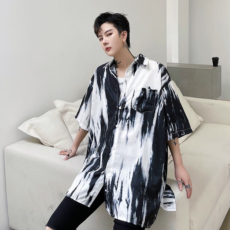 病みカッコイイ メンズファッション ストリートファッション ヒップホップ 個性的 裏原 サマーブラックホワイトシャツ ルーズレッド 夏物 ✝ おしゃれ メンズ 20873892586