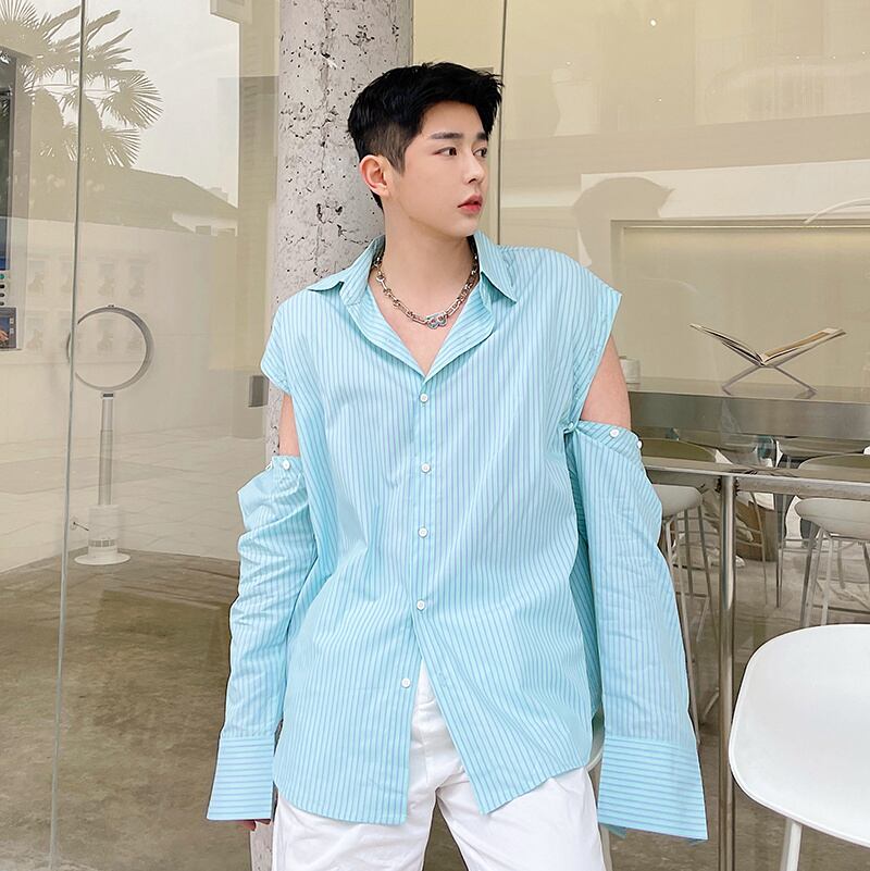 病みカッコイイ メンズファッション ストリートファッション ヒップホップ 個性的 裏原 スプリングサマーストライプシャツ ルーズレッドカジュアル ロング 春物 夏物 ✝ おしゃれ メンズ 35125710645