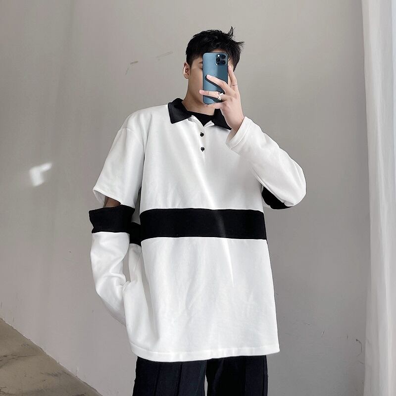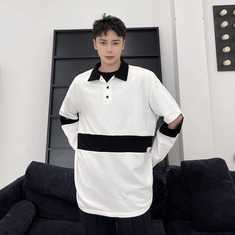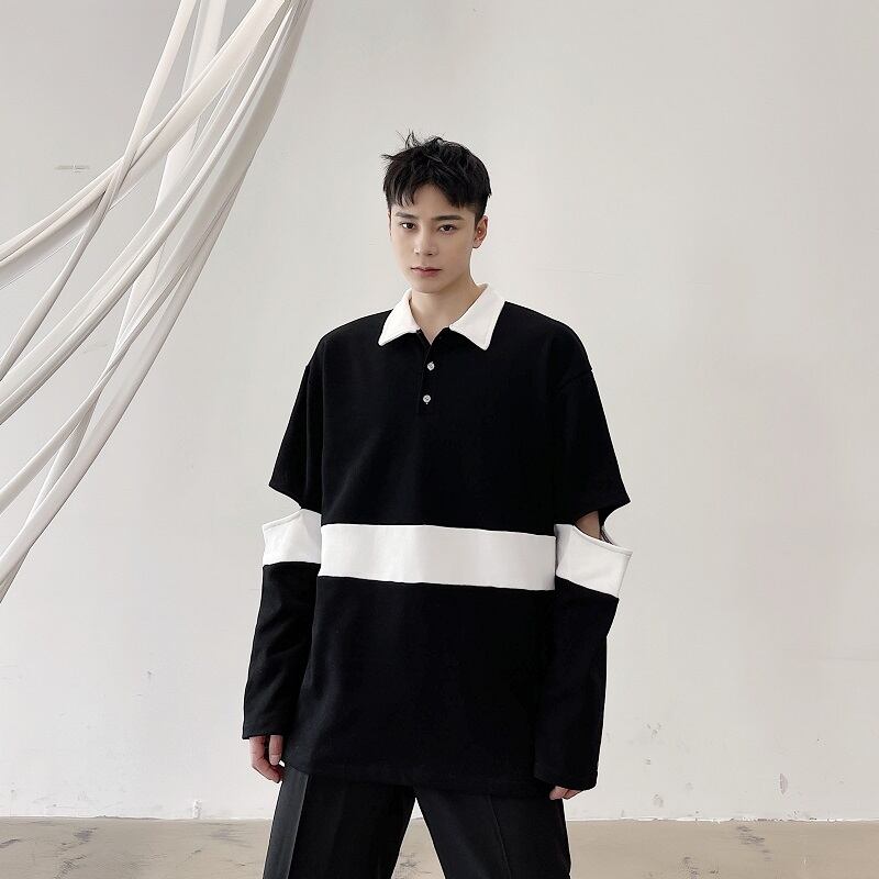 病みカッコイイ メンズファッション ストリートファッション ヒップホップ 個性的 裏原 スプリングサマースタンダードブラックホワイトカラーセーター ルーズシャツ ロング レトロ ストリート 春物 夏物 ✝ おしゃれ メンズ 43108572481