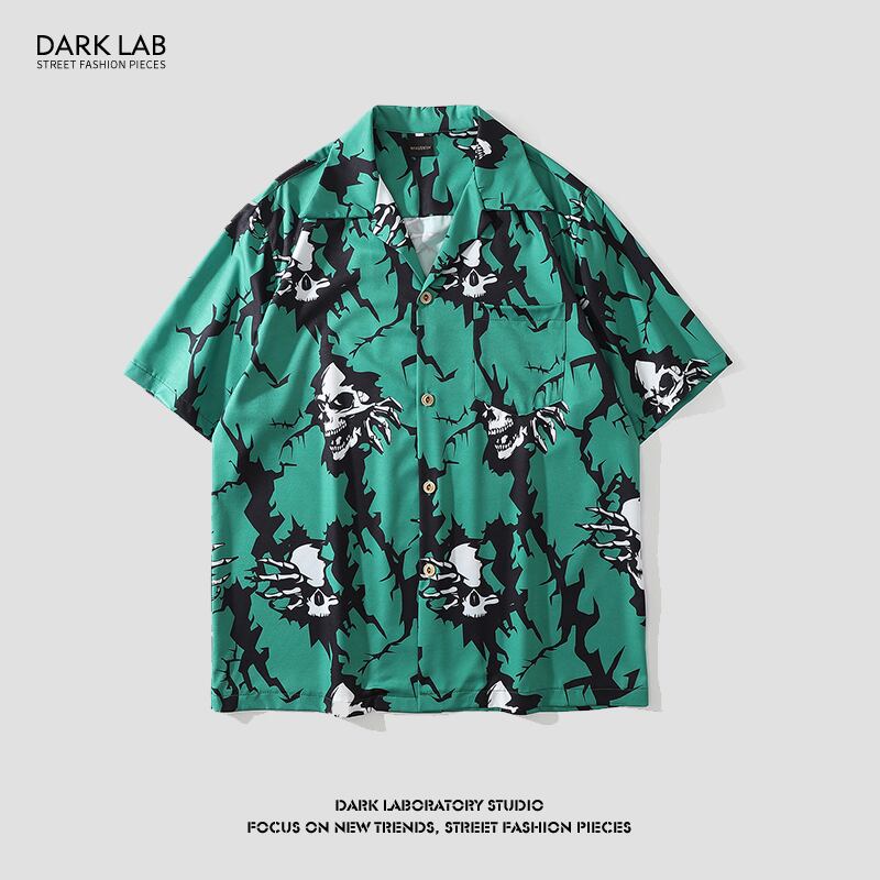 病みカッコイイ メンズファッション ストリートファッション ヒップホップ 個性的 裏原 ダークプリント柄Tシャツ シャツ サマールーズカジュアルジャケット ストリート 夏物 ヨーロピアン ✝ メンズファッション917002812