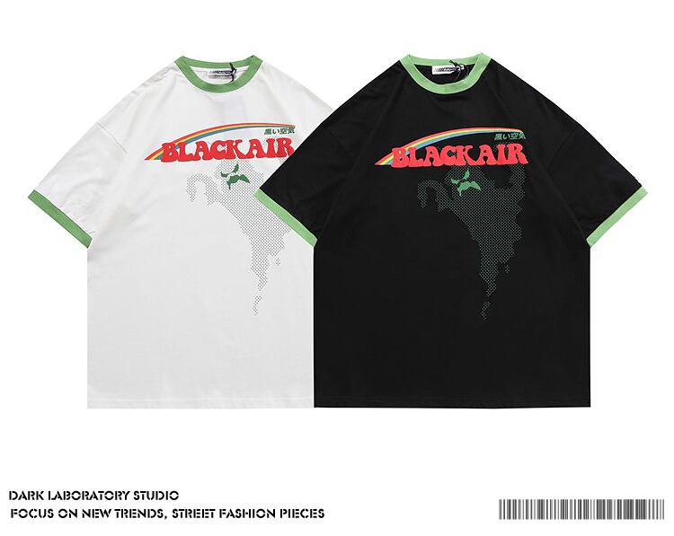 病みカッコイイ メンズファッション ストリートファッション ヒップホップ 個性的 裏原 サマースタンダードカラーTシャツ プリント レトロ ストリート 夏物 ✝ メンズファッション79127956692