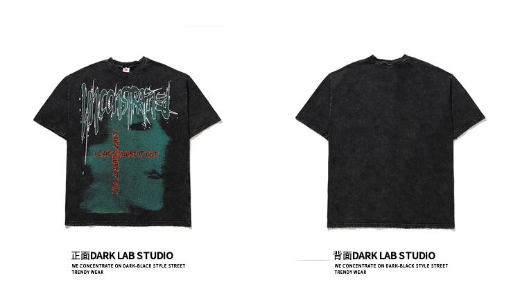 病みカッコイイ メンズファッション ストリートファッション ヒップホップ 個性的 裏原 ダークTシャツ シャツ ルーズプリント ストリート ✝ メンズファッション10206413950