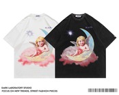 病みカッコイイ メンズファッション ストリートファッション ヒップホップ 個性的 裏原 スタンダードプリント柄Tシャツ ルーズサマーカジュアル レトロ 夏物 ヨーロピアン ✝ メンズファッション6917255314
