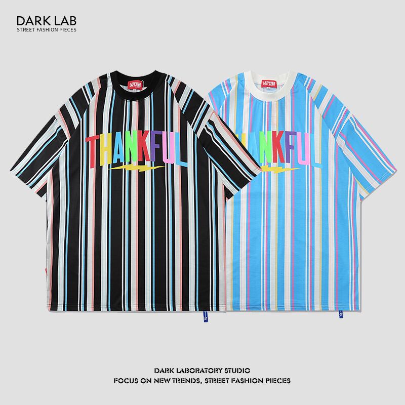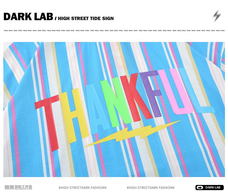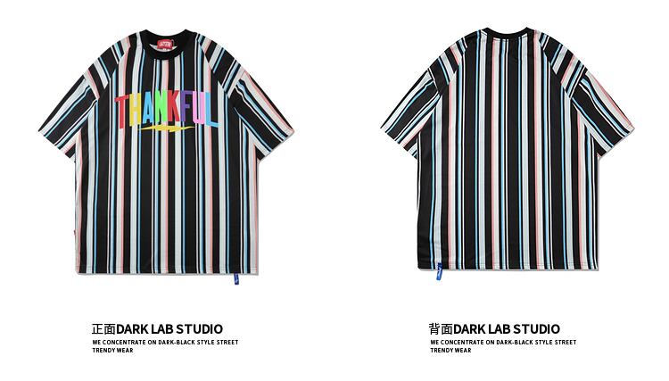 病みカッコイイ メンズファッション ストリートファッション ヒップホップ 個性的 裏原 サマースタンダードストライプカラープリントTシャツ シャツ ルーズカジュアルラウンドネック レトロ 夏物 Oネック ✝ メンズファッション25502484628