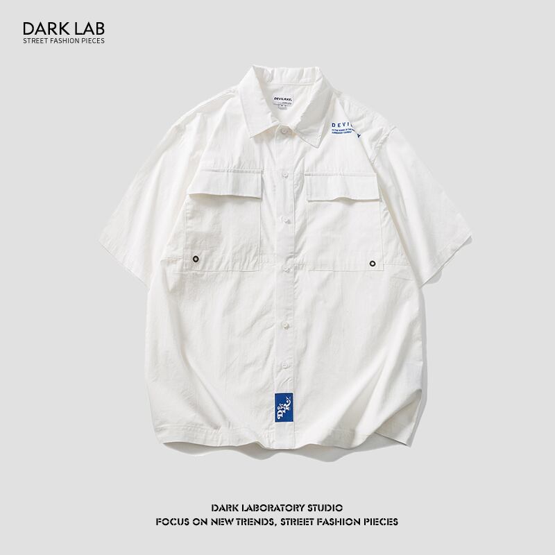 病みカッコイイ メンズファッション ストリートファッション ヒップホップ 個性的 裏原 プリントショートシャツ スタンダードルーズソリッド カラー レトロ ストリート ソリッドカラー ✝ メンズファッション63055451428