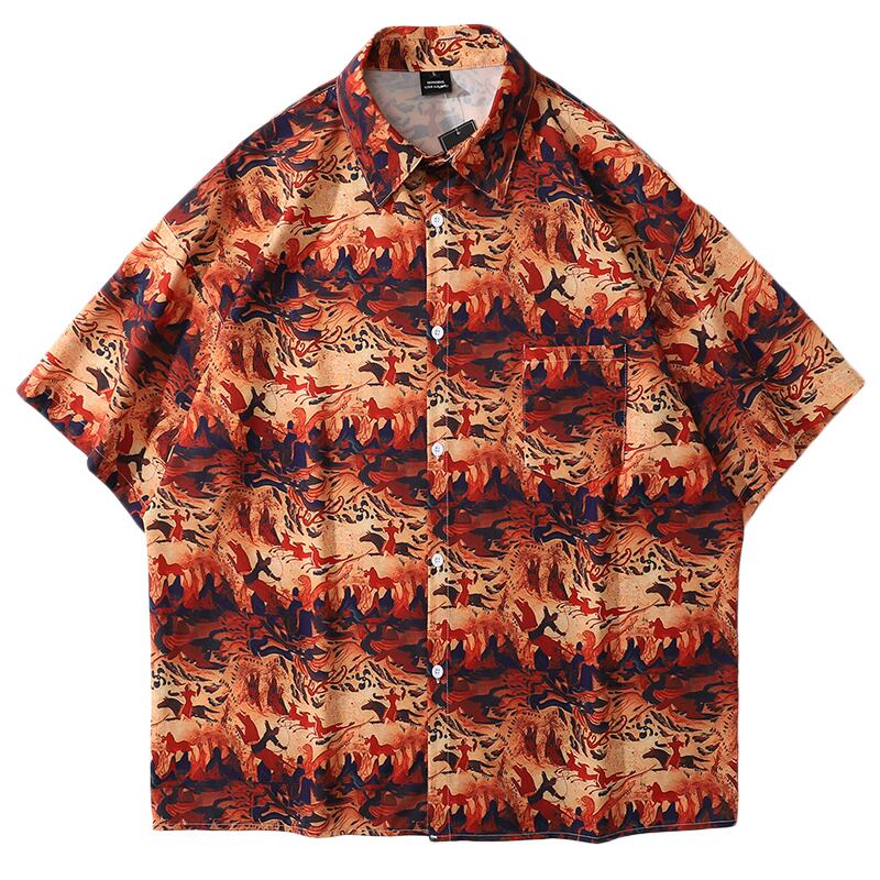 病みカッコイイ メンズファッション ストリートファッション ヒップホップ 個性的 裏原 サマースタイルスタンダードプリント柄シャツ ルーズカジュアル レトロ ストリート 夏物 ✝ メンズファッション91380469964