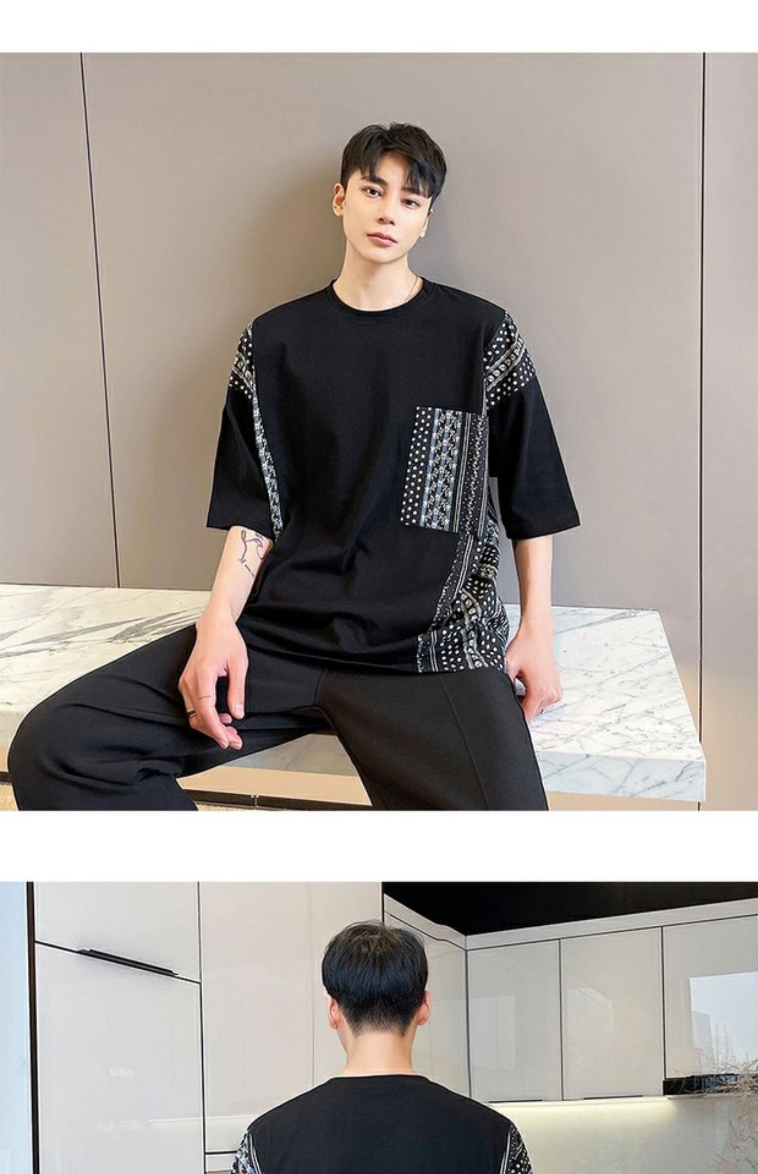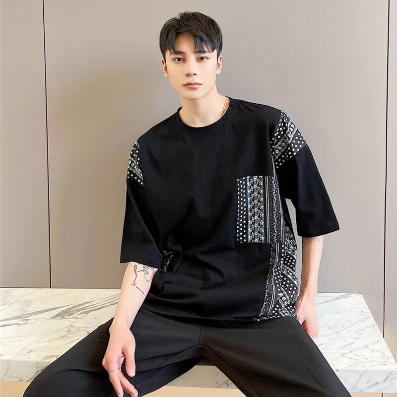 病みカッコイイ メンズファッション ストリートファッション ヒップホップ 個性的 裏原 サマースタンダードエスニックパターンTシャツ シャツ レトロ 夏物 ステッチ ✝ おしゃれ メンズ 55306725130