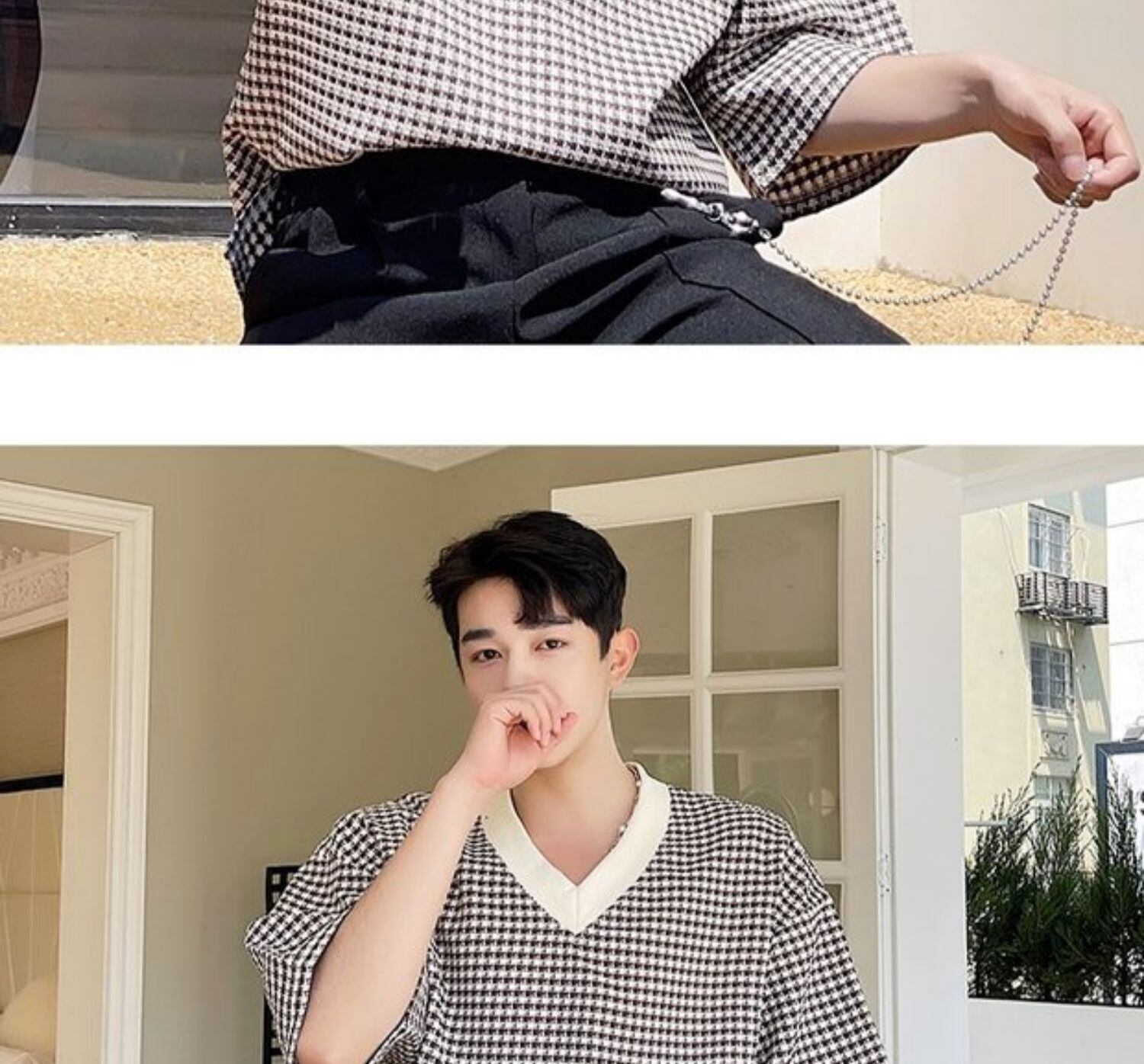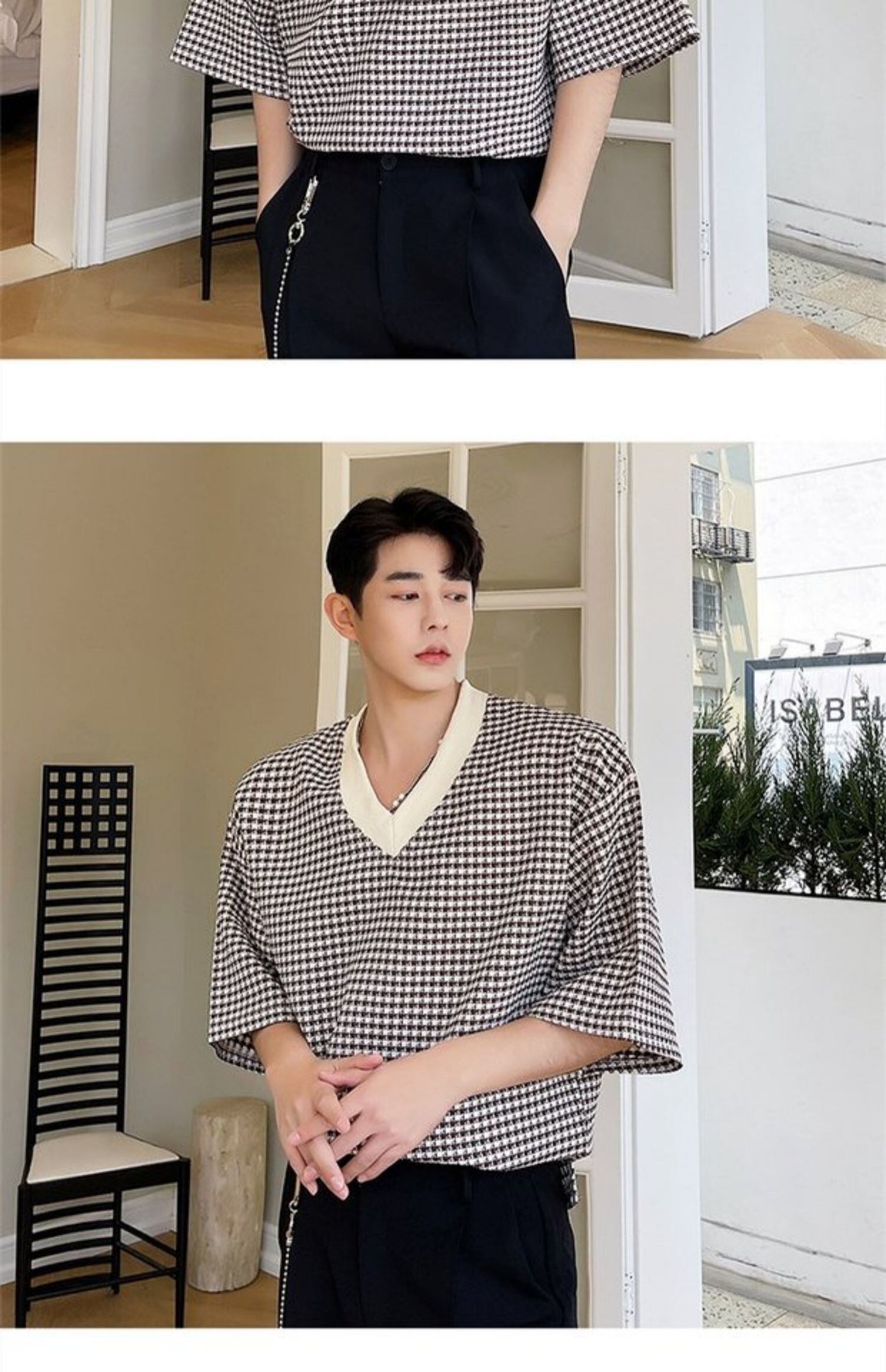 病みカッコイイ メンズファッション ストリートファッション ヒップホップ 個性的 裏原 サマースタンダードスタイル格子柄Tシャツ シャツ ルーズVネック レトロ 夏物 ✝ おしゃれ メンズ 66921950912