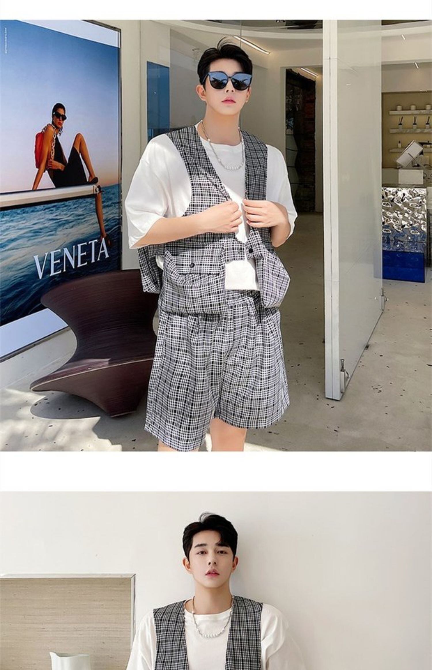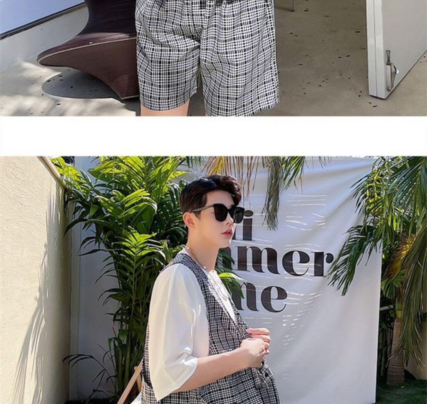 病みカッコイイ メンズファッション ストリートファッション ヒップホップ 個性的 裏原 サマー格子柄ショーツ レッドスリーブ 夏物 ブルマー ✝ おしゃれ メンズ 66098273619