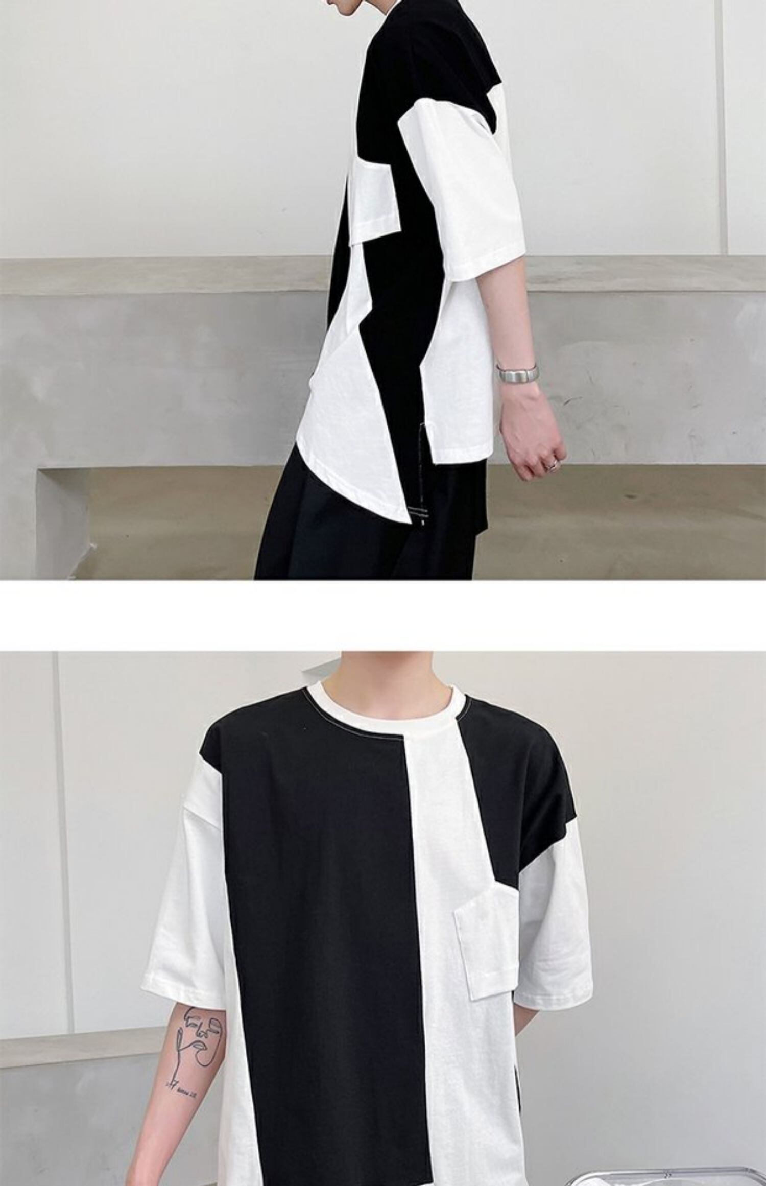 病みカッコイイ メンズファッション ストリートファッション ヒップホップ 個性的 裏原 サマースタンダードブラックホワイトTシャツ トップス レトロ 夏物 ✝ おしゃれ メンズ 92418397569
