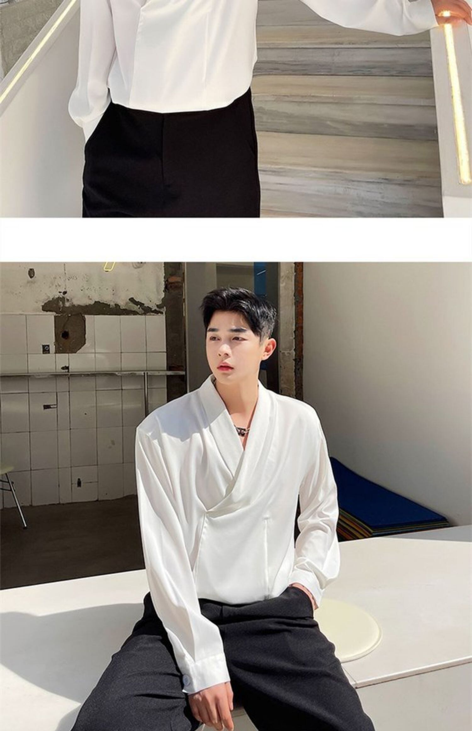 病みカッコイイ メンズファッション ストリートファッション ヒップホップ 個性的 裏原 スプリングサマーカラープルオーバー シャツ ルーズ薄手シフォントップス ロング 春物 夏物 ドレス ピュア ✝ おしゃれ メンズ 40082082689