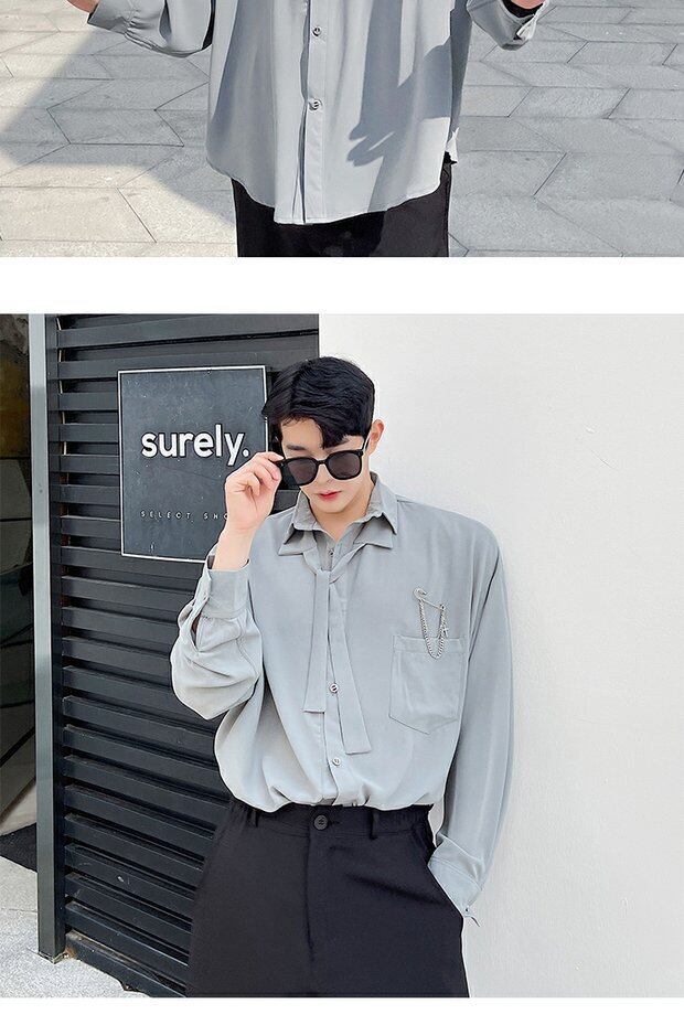 病みカッコイイ メンズファッション ストリートファッション ヒップホップ 個性的 裏原 スプリングサマースタイルリボンシャツ ルーズカラー ロング 春物 夏物 ドレス ピュア ✝ おしゃれ メンズ 4948853734